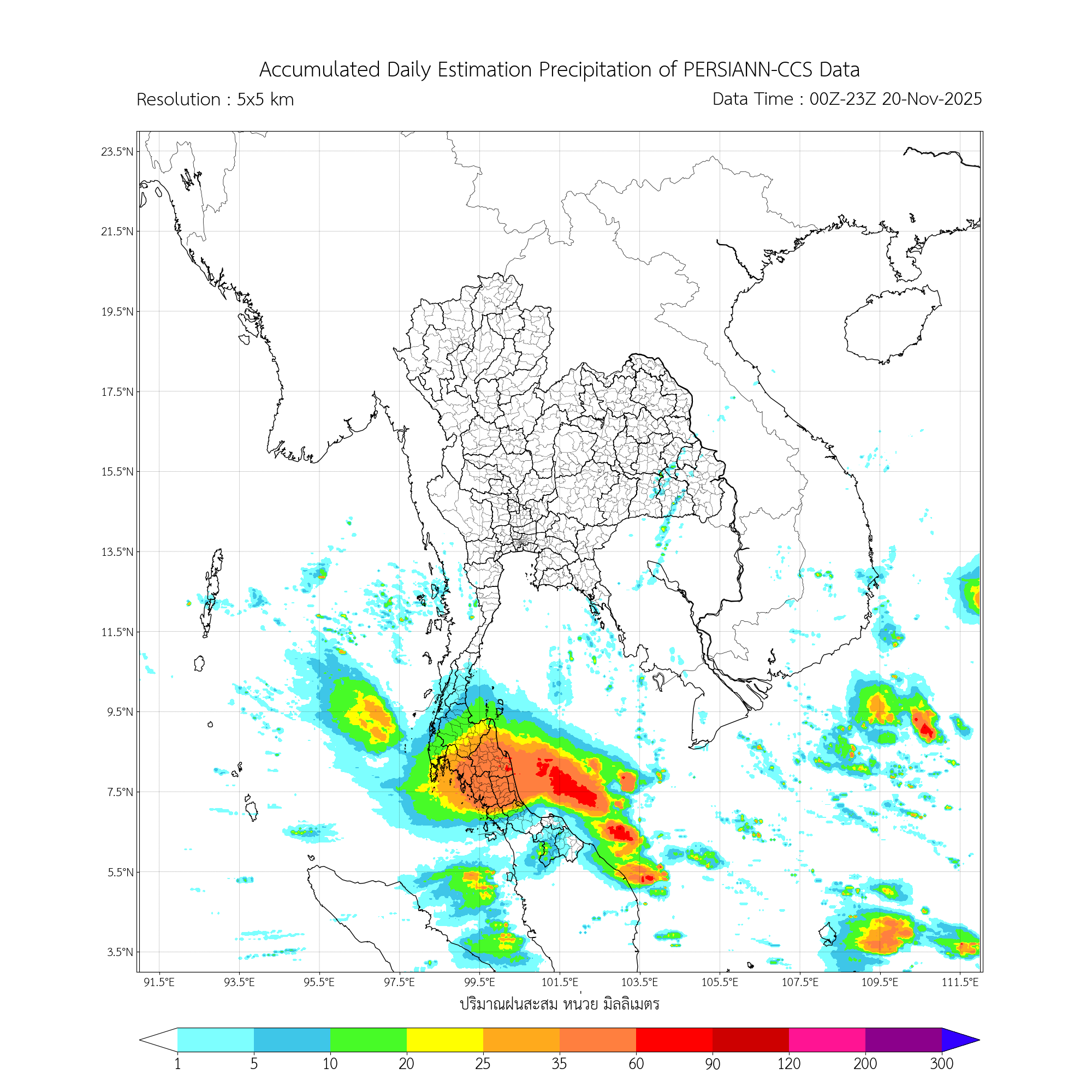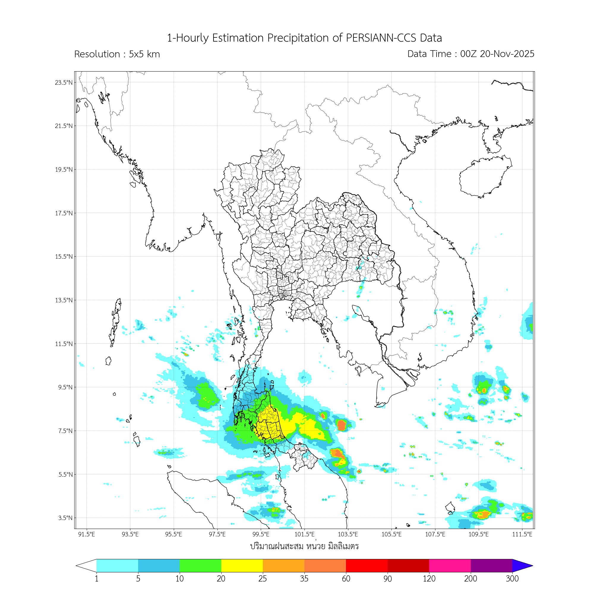 การประมาณค่าฝนจากดาวเทียม เมื่อวาน (19/11/2025)