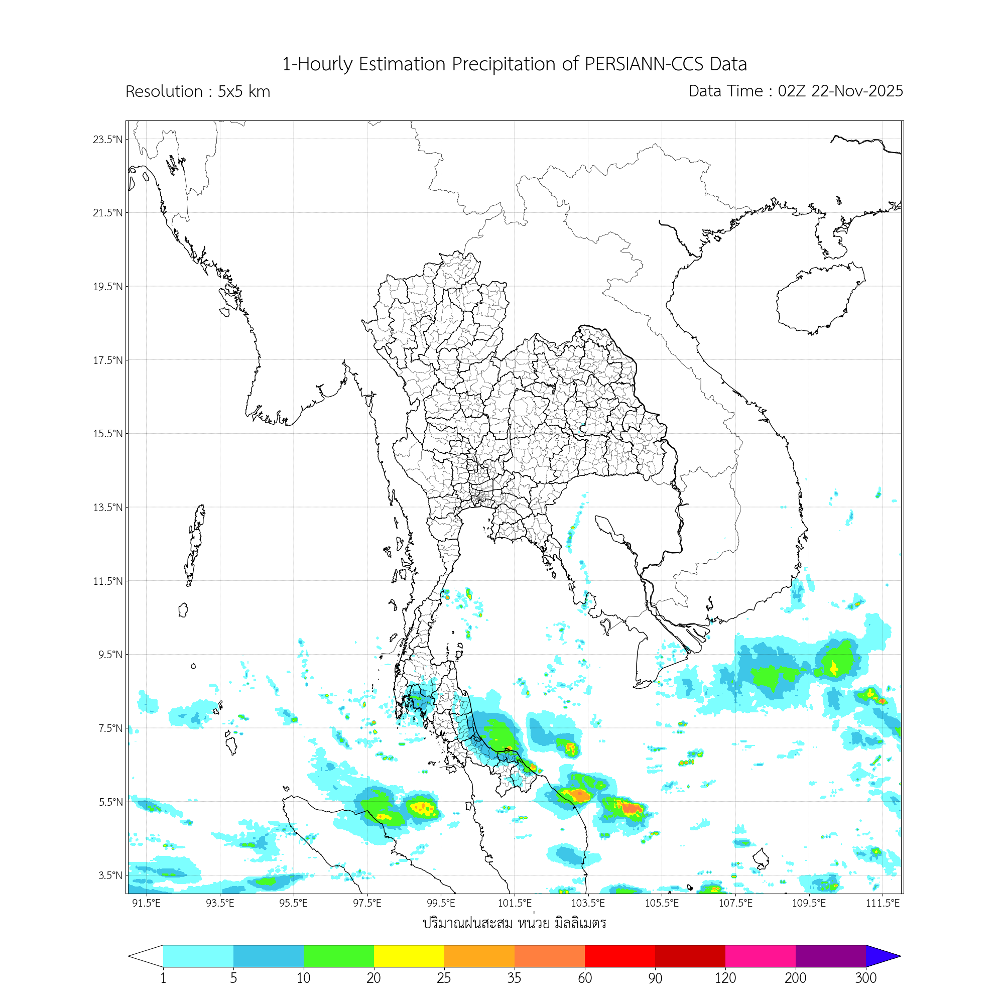 การประมาณค่าฝนจากดาวเทียม เมื่อวาน (21/11/2025)