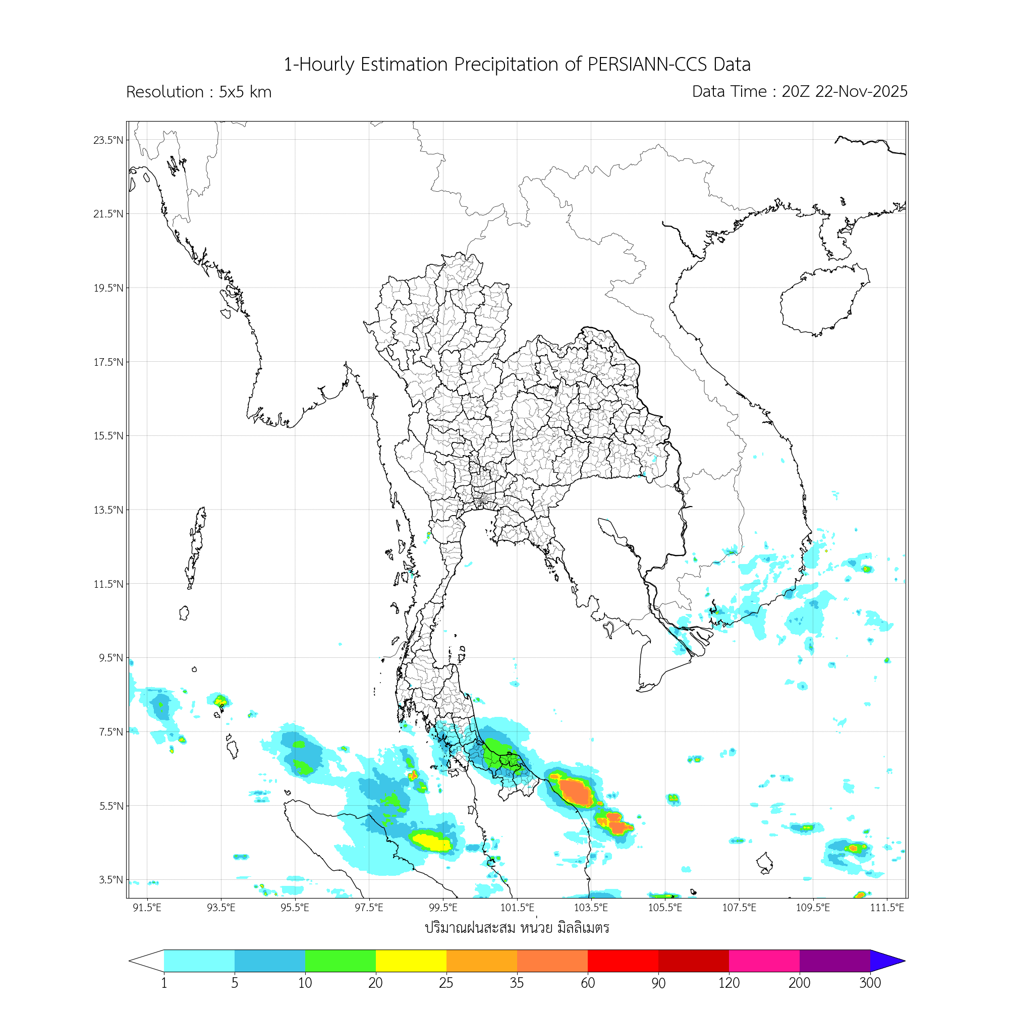 การประมาณค่าฝนจากดาวเทียม เมื่อวาน (22/11/2025)