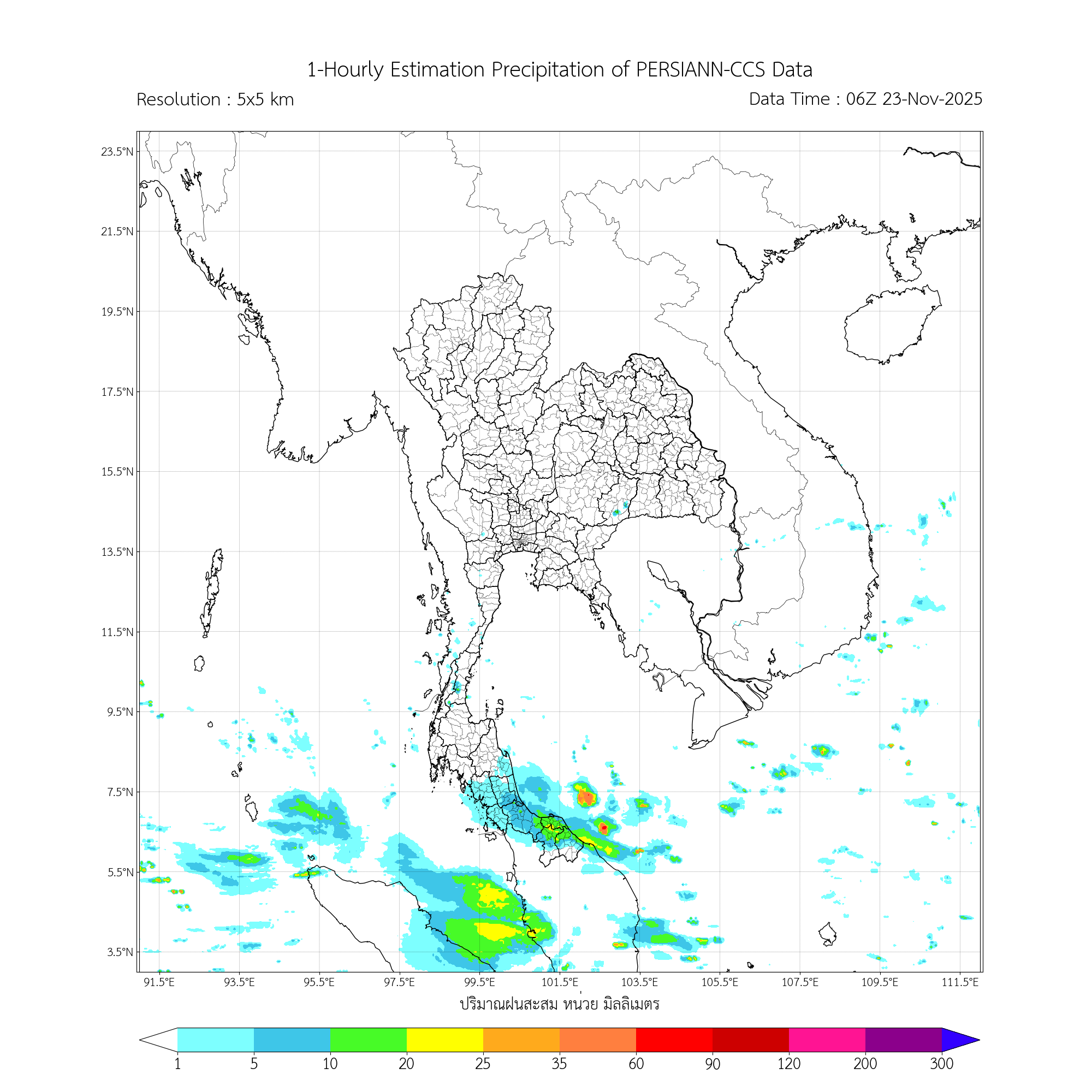 การประมาณค่าฝนจากดาวเทียม เมื่อวาน (22/11/2025)