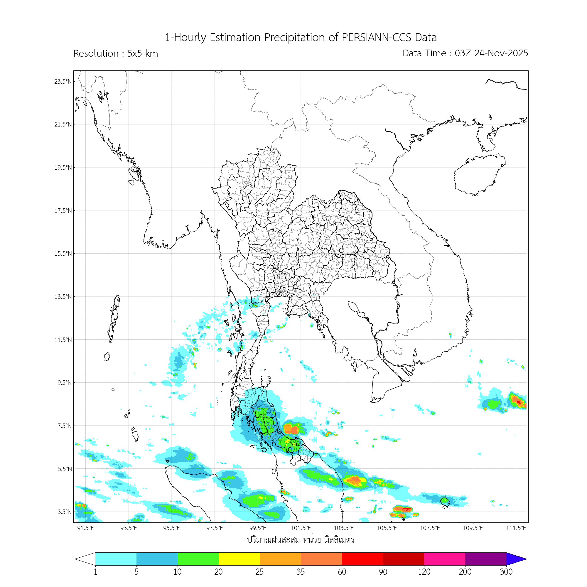 การประมาณค่าฝนจากดาวเทียม เมื่อวาน (23/11/2025)