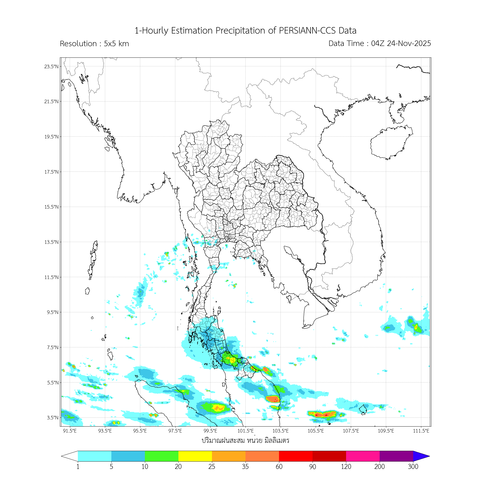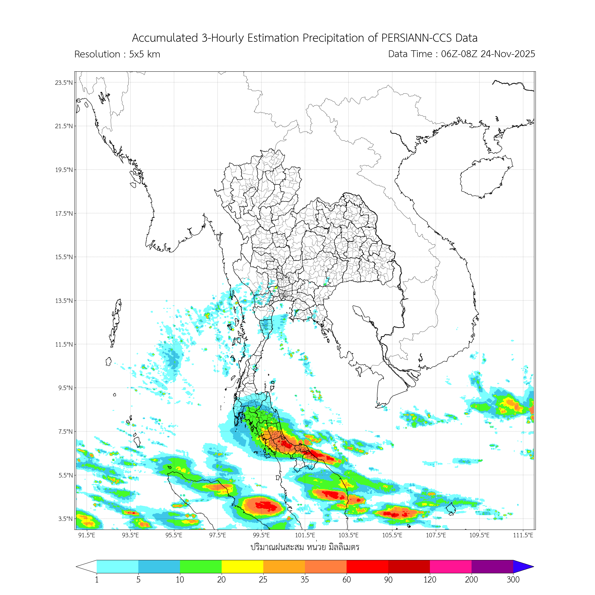 การประมาณค่าฝนจากดาวเทียม เมื่อวาน (23/11/2025)