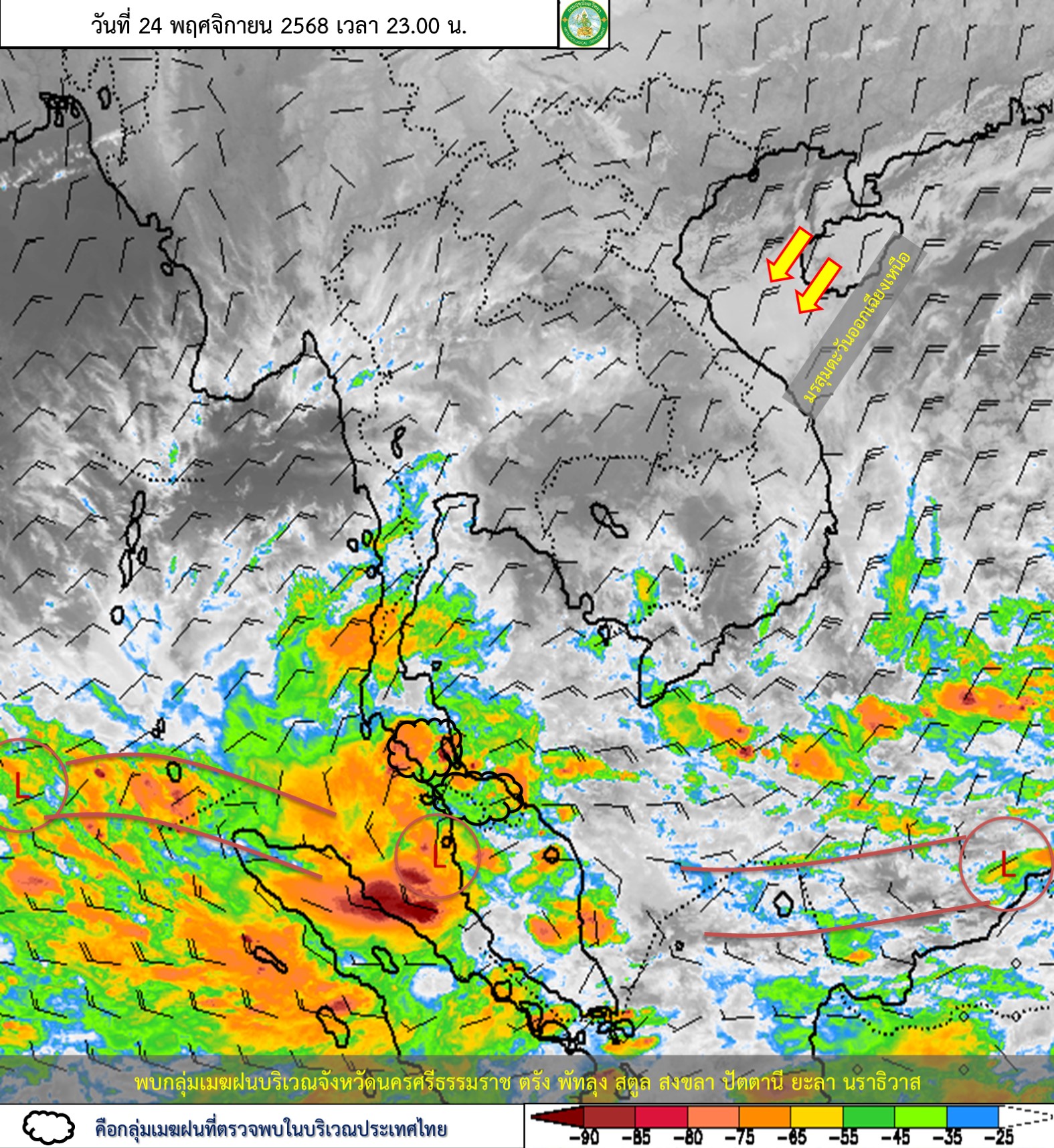 การประมาณค่าฝนจากดาวเทียม เมื่อวาน (24/11/2025)