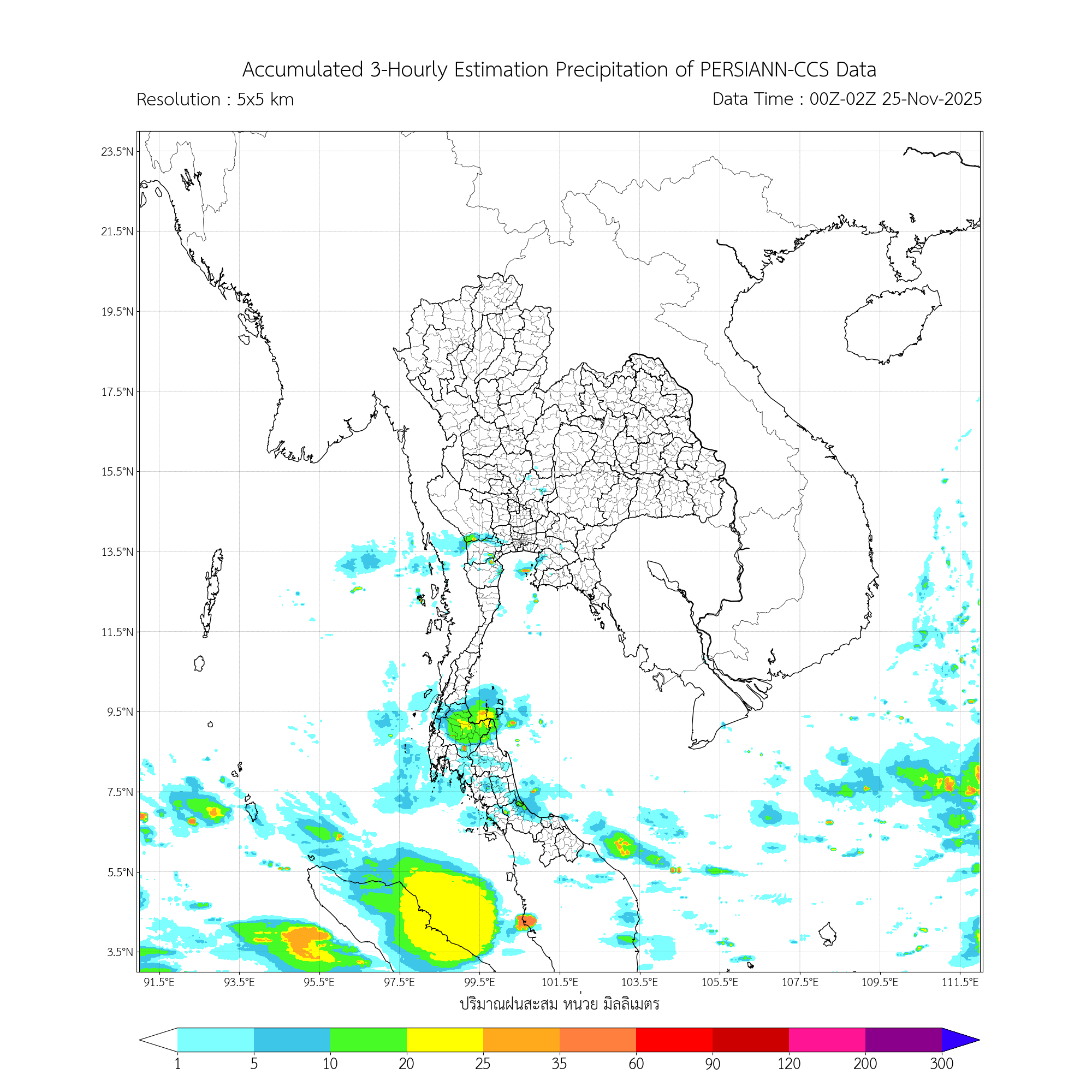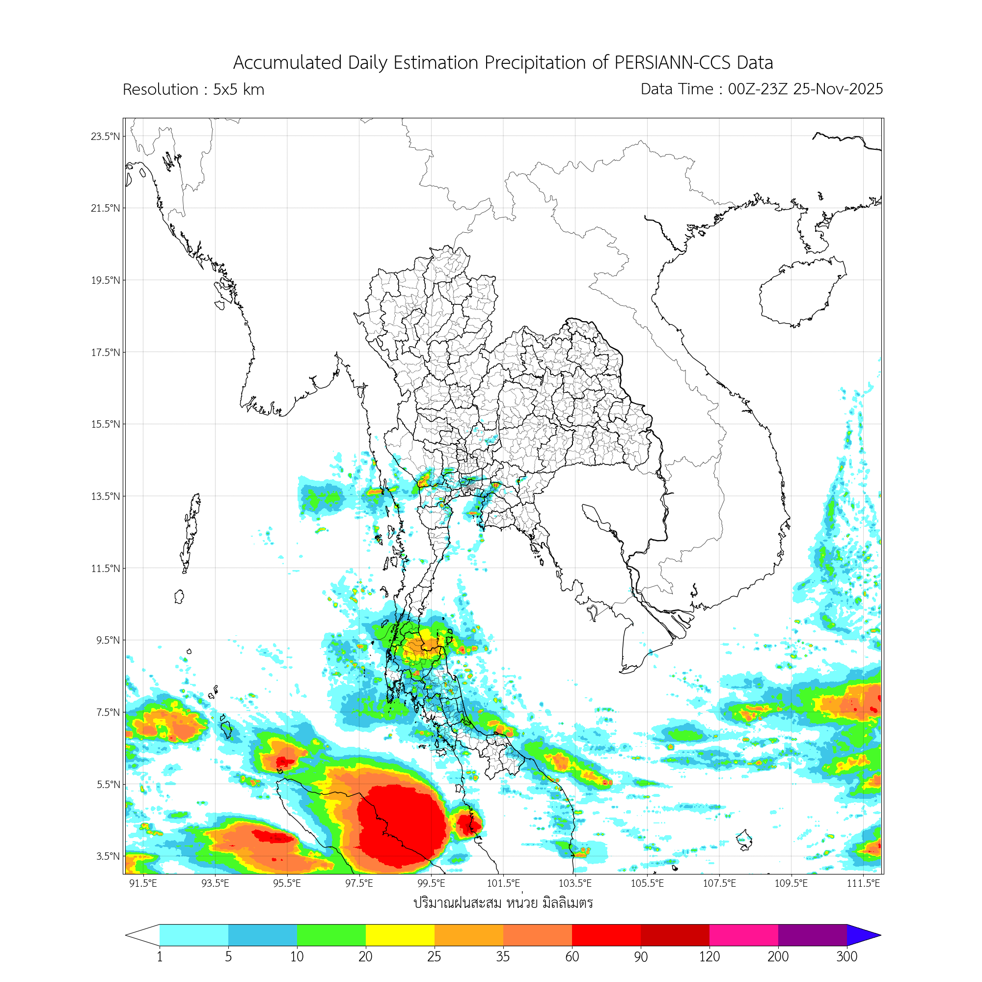 การประมาณค่าฝนจากดาวเทียม เมื่อวาน (24/11/2025)
