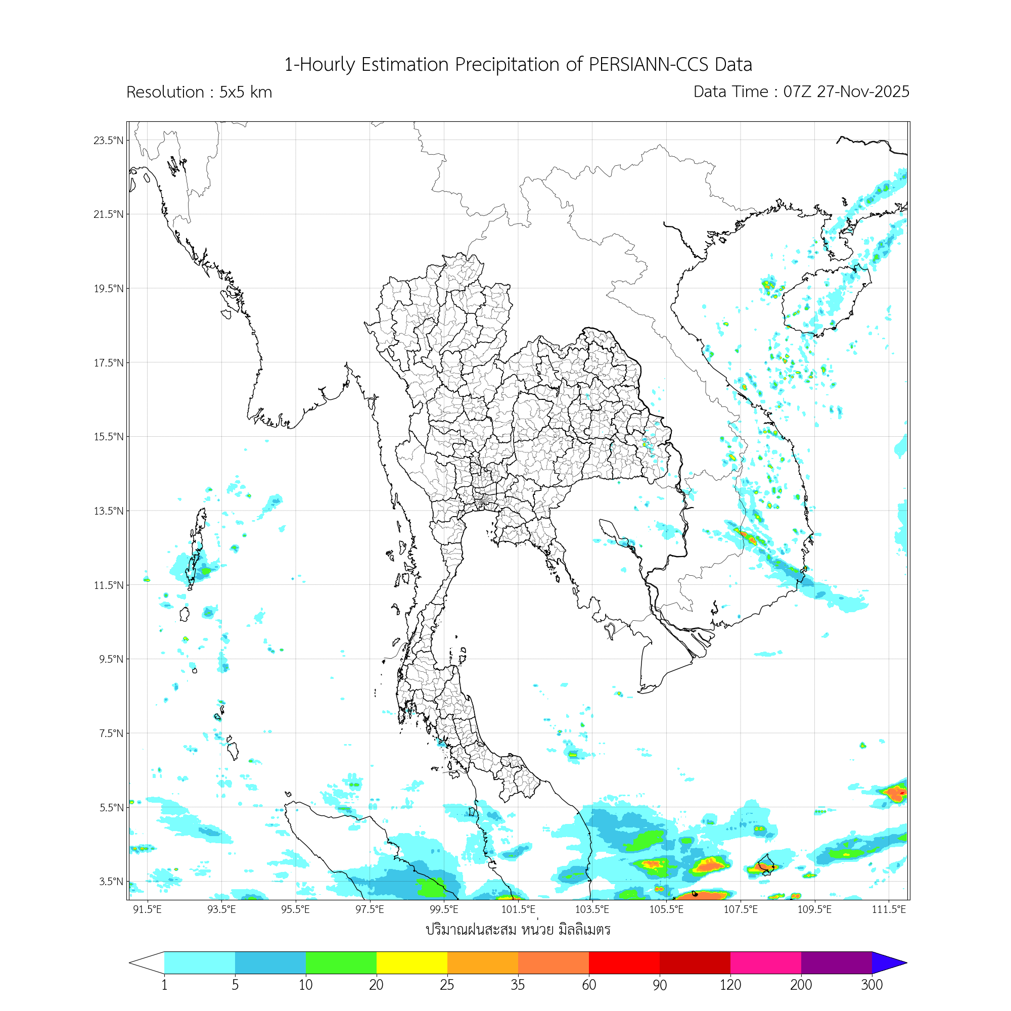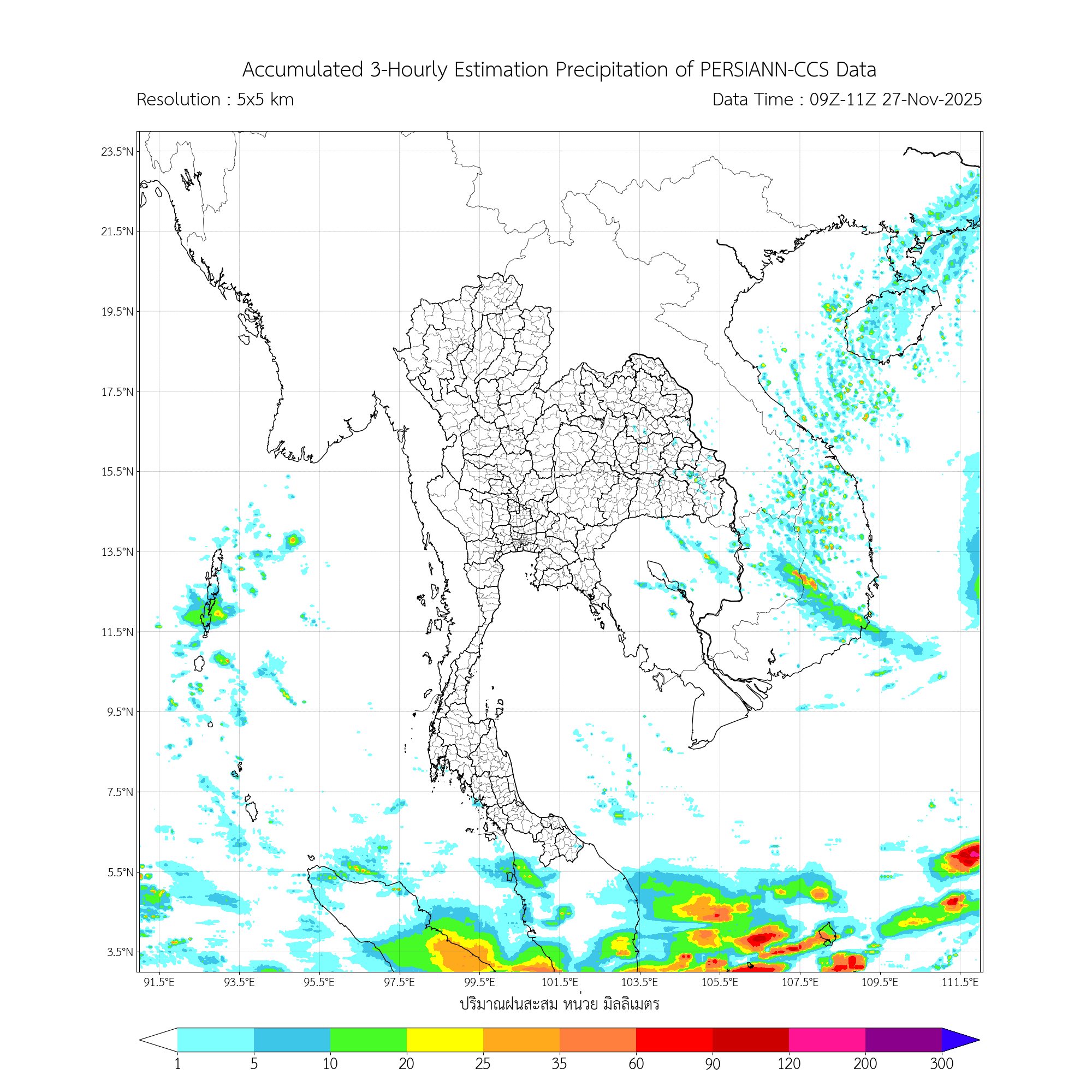 การประมาณค่าฝนจากดาวเทียม เมื่อวาน (26/11/2025)