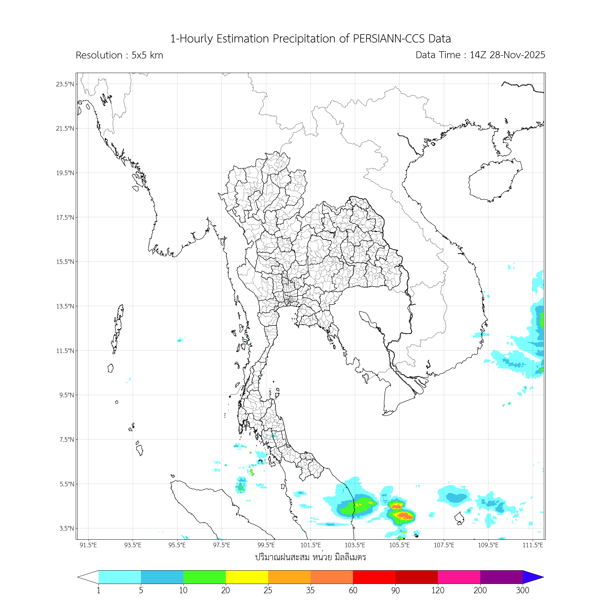 การประมาณค่าฝนจากดาวเทียม เมื่อวาน (27/11/2025)