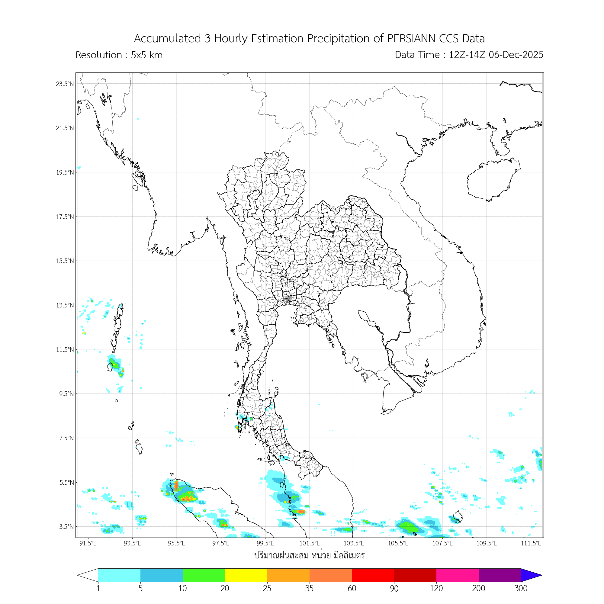 การประมาณค่าฝนจากดาวเทียม เมื่อวาน (05/12/2025)