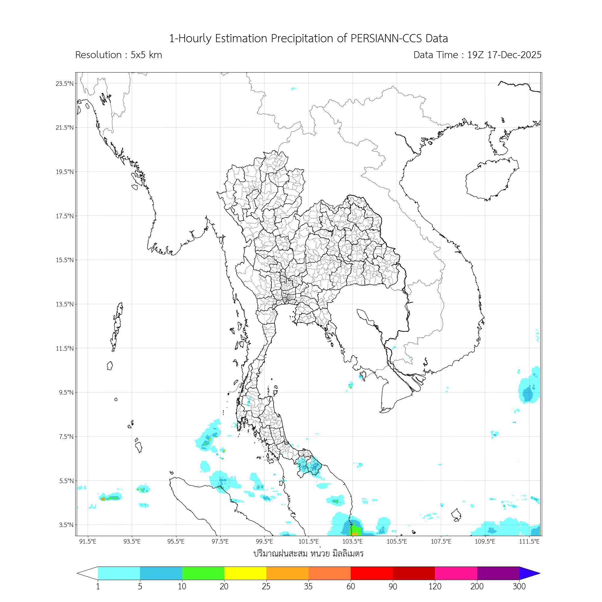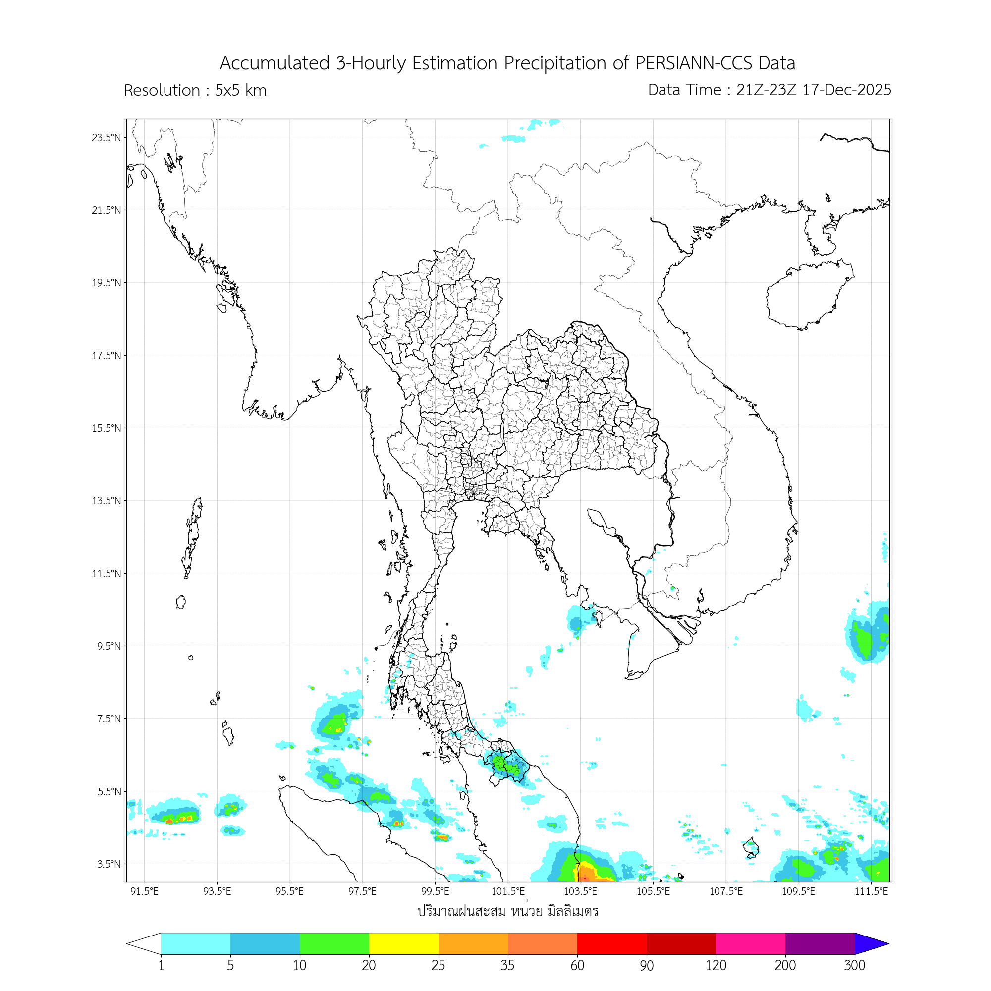 การประมาณค่าฝนจากดาวเทียม เมื่อวาน (17/12/2025)