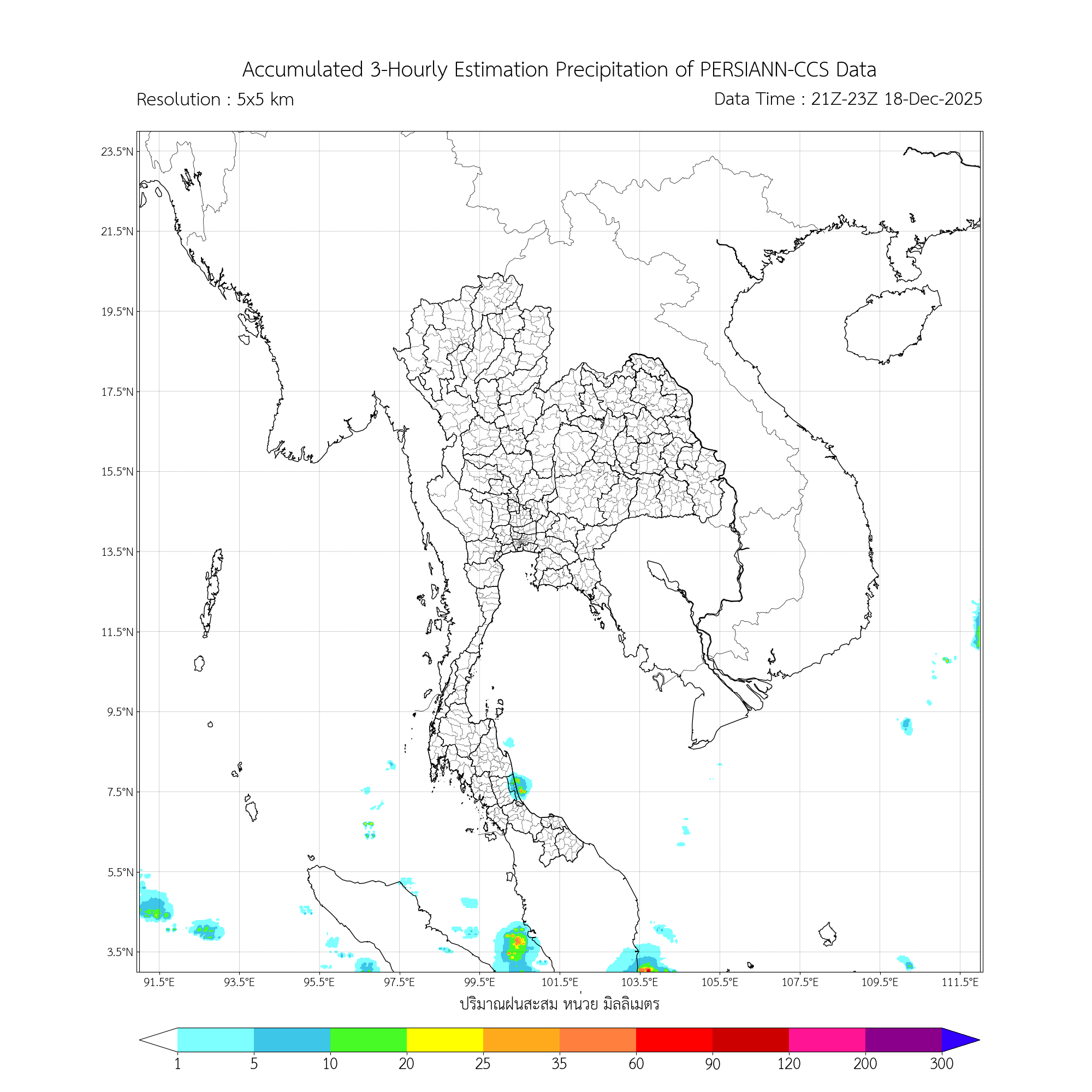 การประมาณค่าฝนจากดาวเทียม เมื่อวาน (18/12/2025)