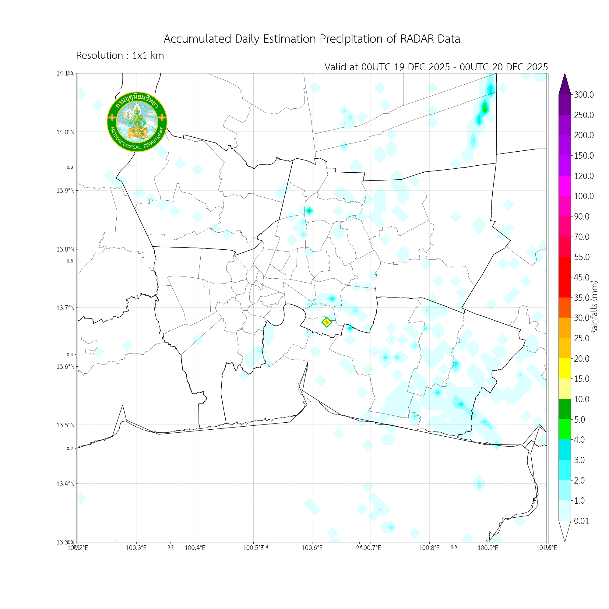 การประมาณค่าฝนจากดาวเทียม เมื่อวาน (19/12/2025)