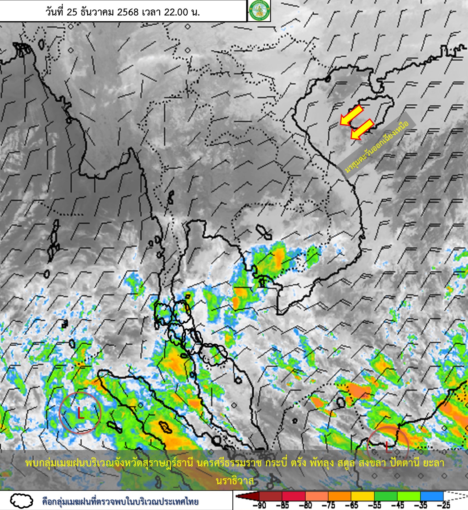 การประมาณค่าฝนจากดาวเทียม เมื่อวาน (25/12/2025)