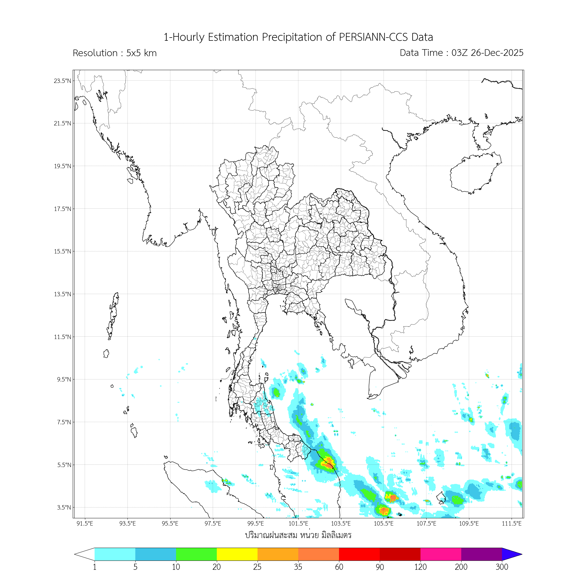 การประมาณค่าฝนจากดาวเทียม เมื่อวาน (25/12/2025)