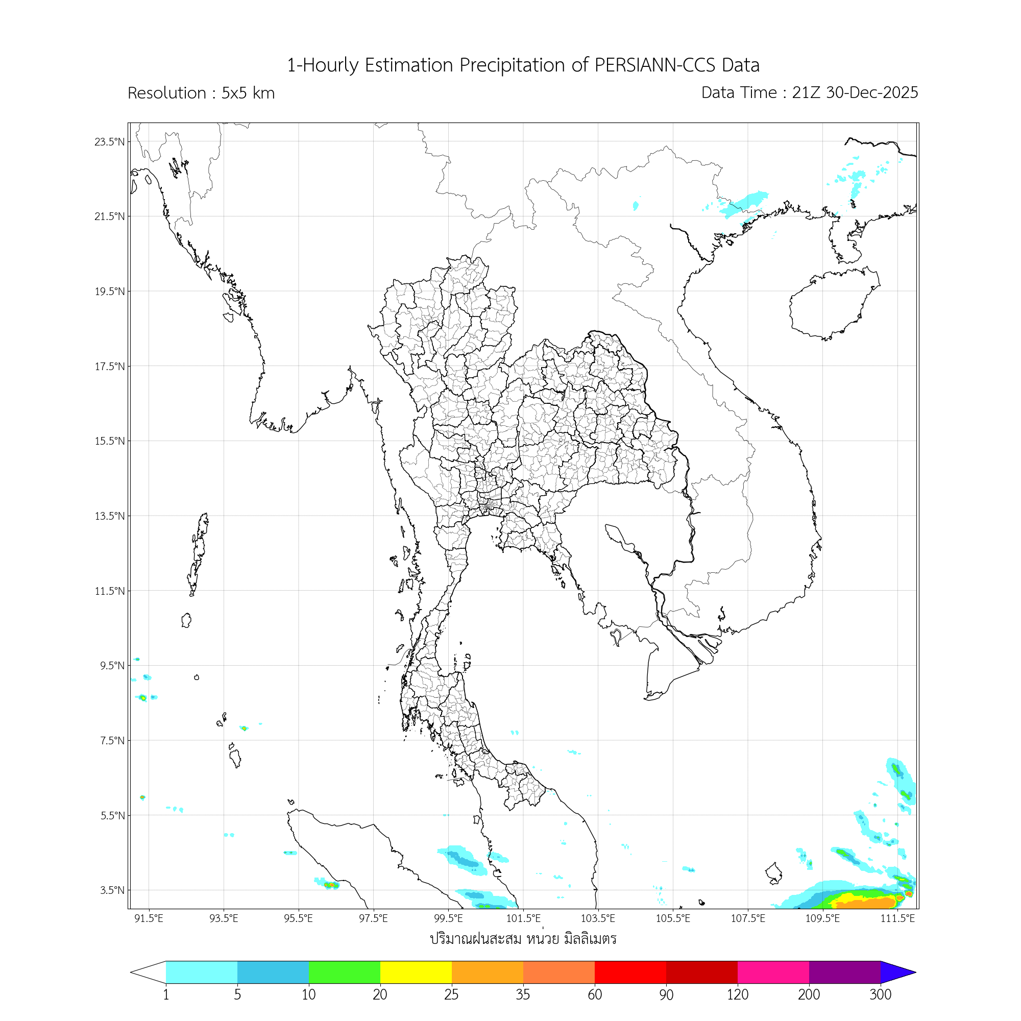 การประมาณค่าฝนจากดาวเทียม เมื่อวาน (30/12/2025)