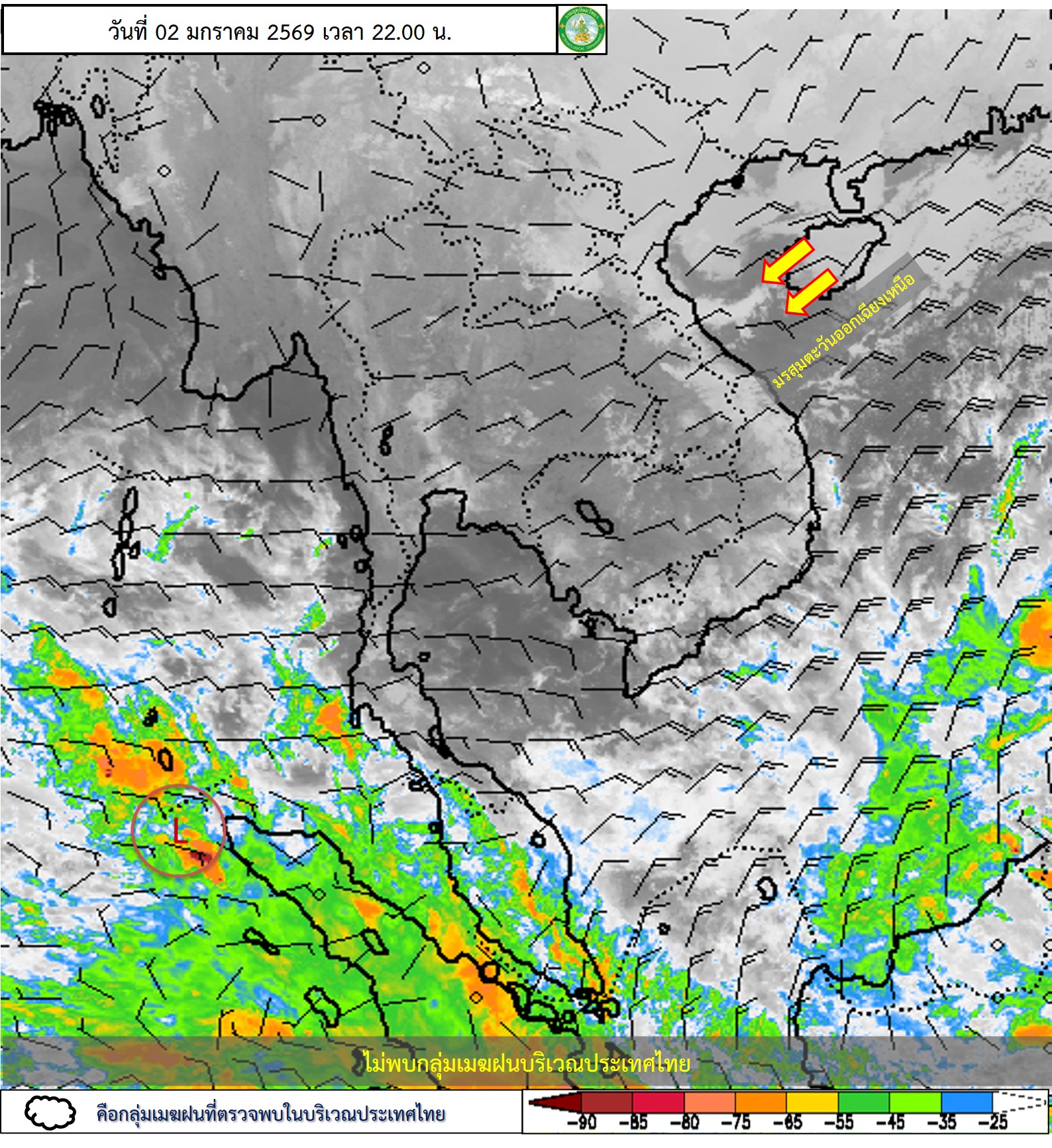 การประมาณค่าฝนจากดาวเทียม เมื่อวาน (02/01/2026)