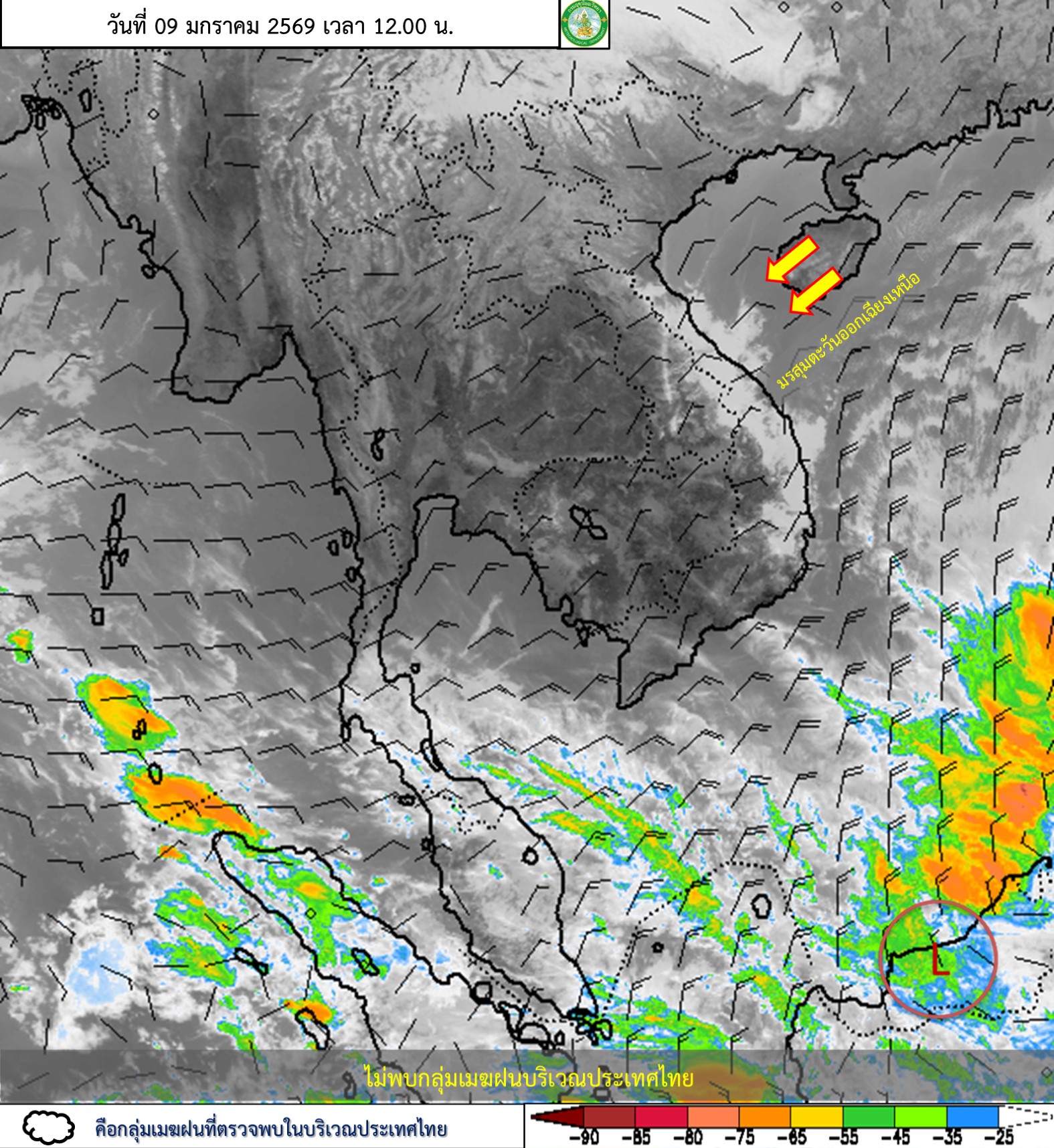 การประมาณค่าฝนจากดาวเทียม เมื่อวาน (09/01/2026)