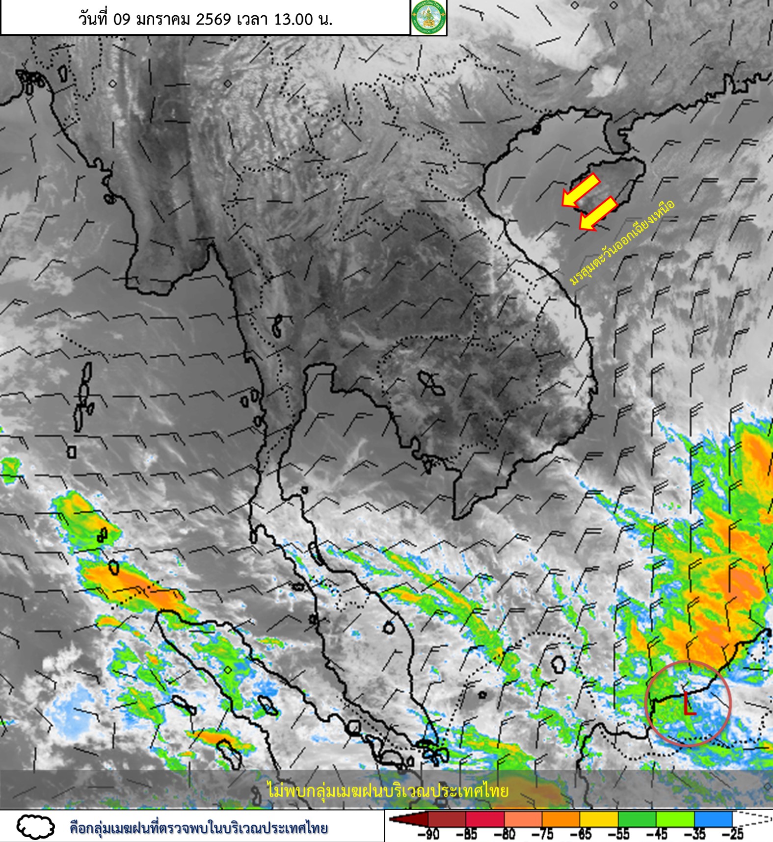 การประมาณค่าฝนจากดาวเทียม เมื่อวาน (09/01/2026)