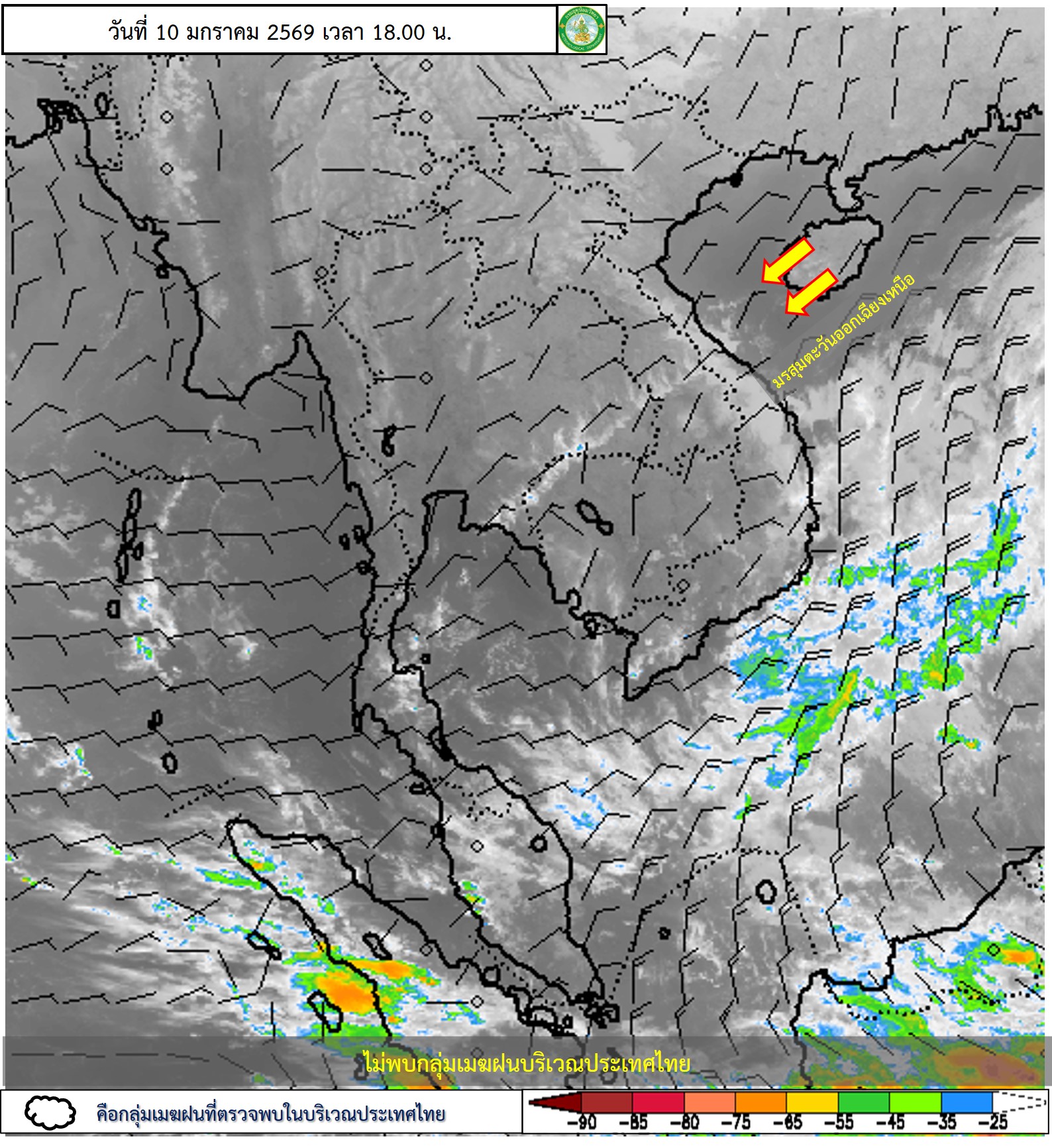 การประมาณค่าฝนจากดาวเทียม เมื่อวาน (10/01/2026)