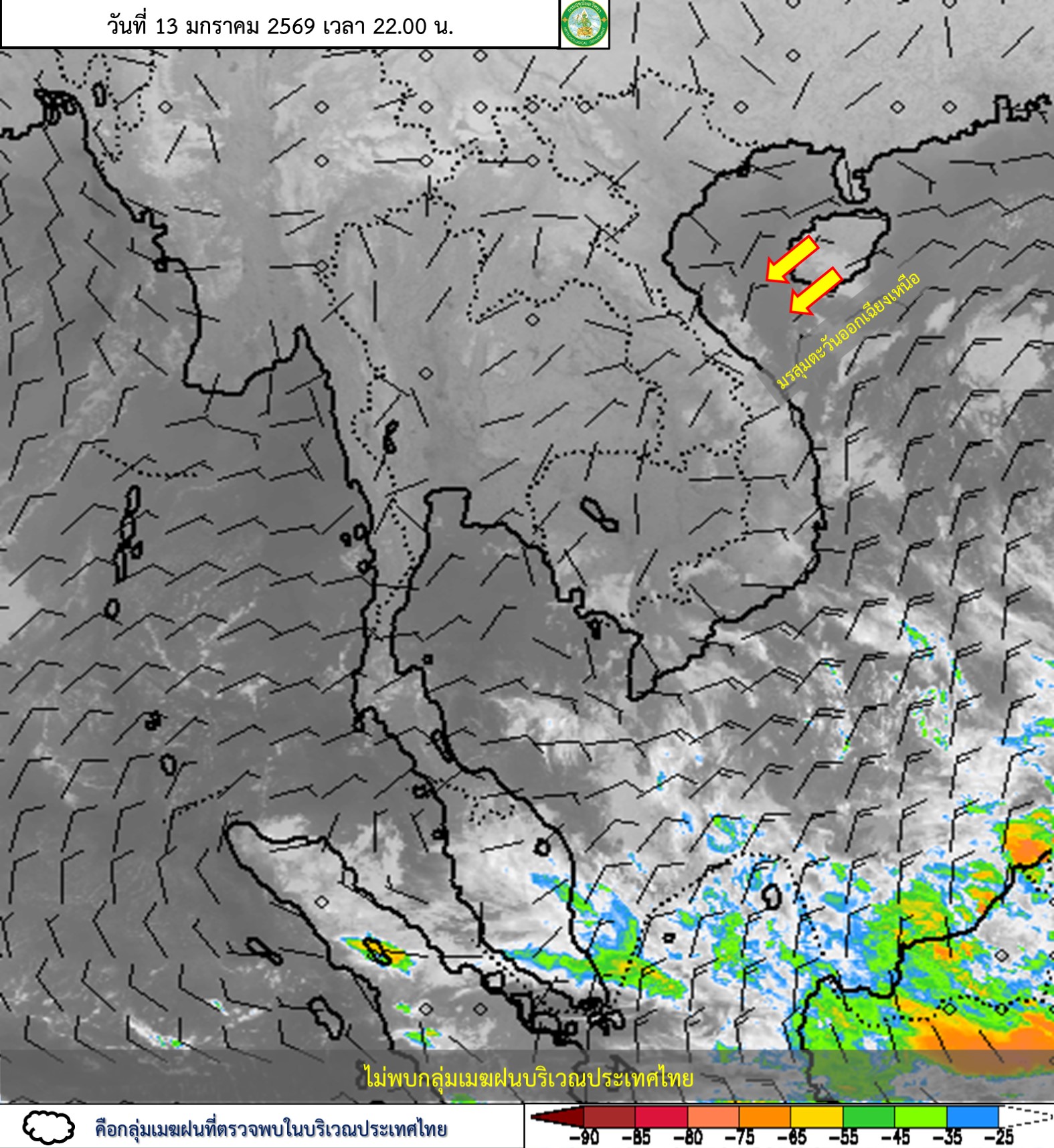 การประมาณค่าฝนจากดาวเทียม เมื่อวาน (13/01/2026)