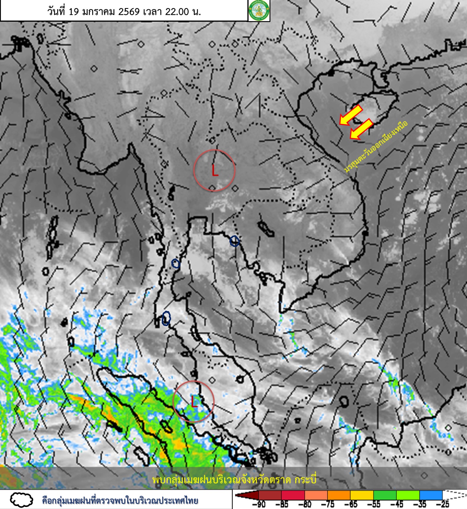 การประมาณค่าฝนจากดาวเทียม เมื่อวาน (19/01/2026)
