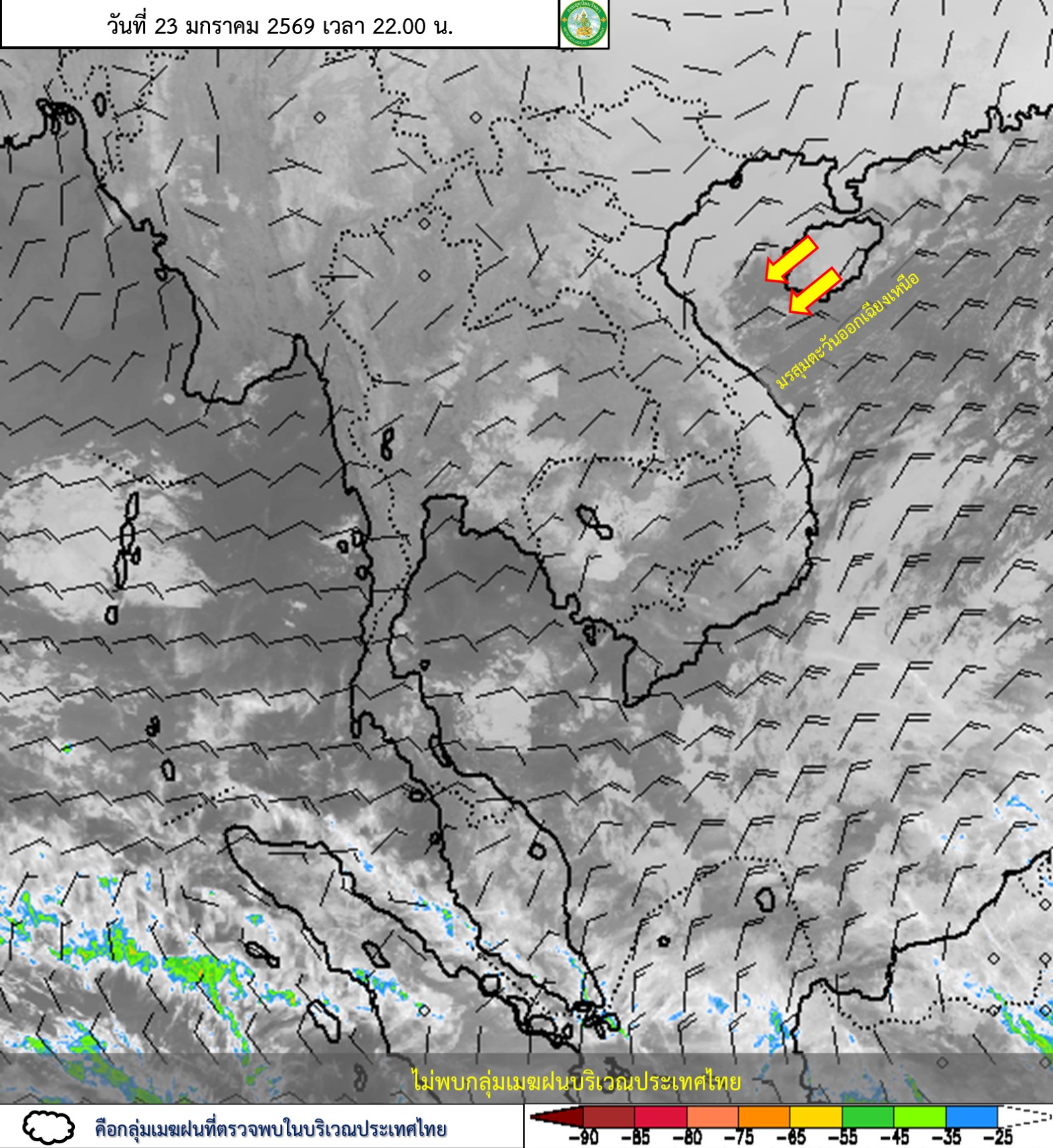 การประมาณค่าฝนจากดาวเทียม เมื่อวาน (22/01/2026)