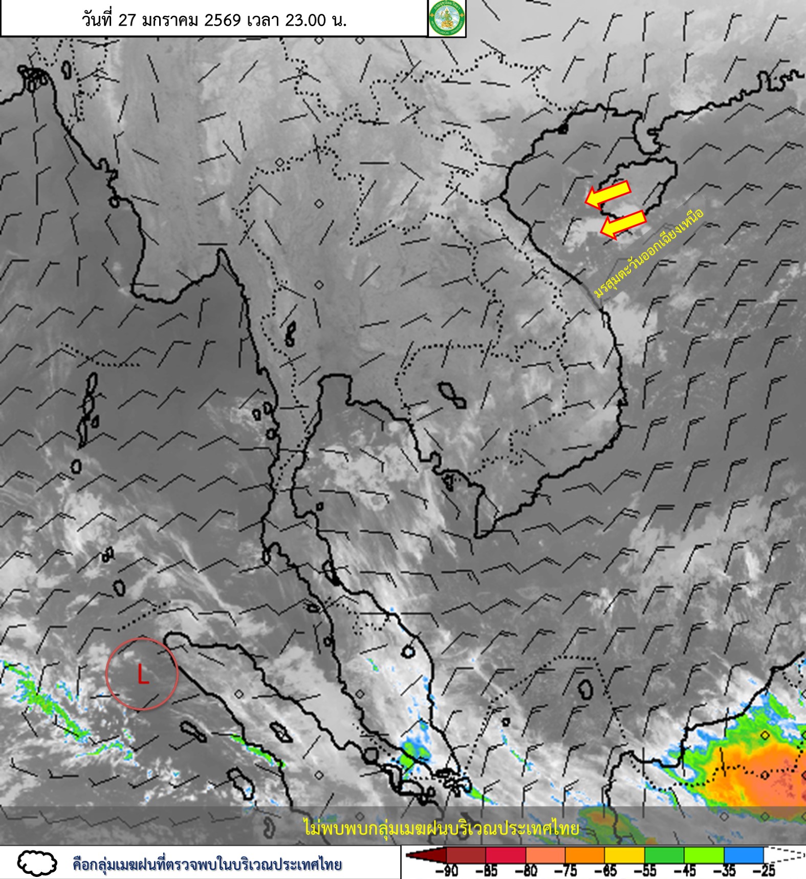 การประมาณค่าฝนจากดาวเทียม เมื่อวาน (27/01/2026)