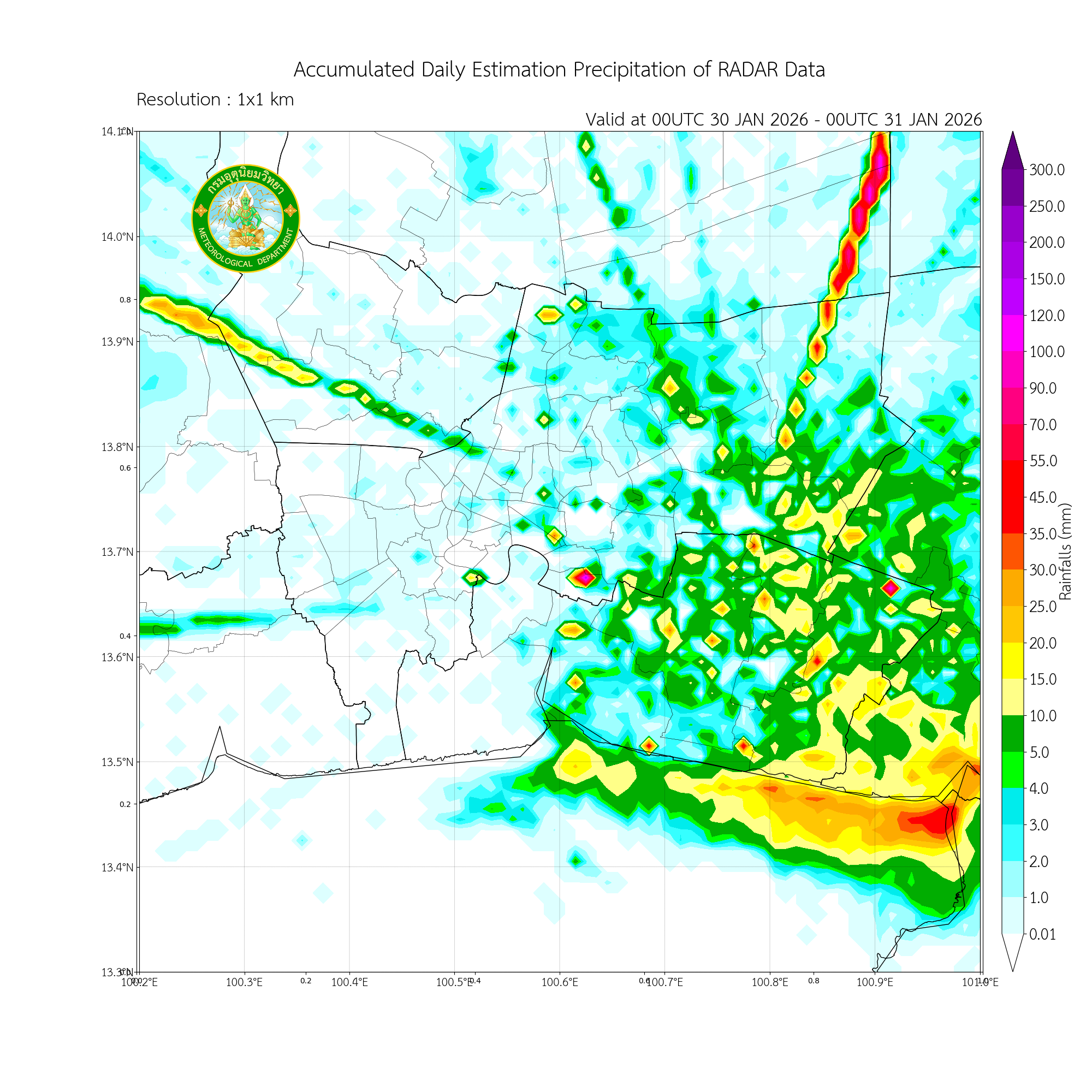 การประมาณค่าฝนจากดาวเทียม เมื่อวาน (30/01/2026)