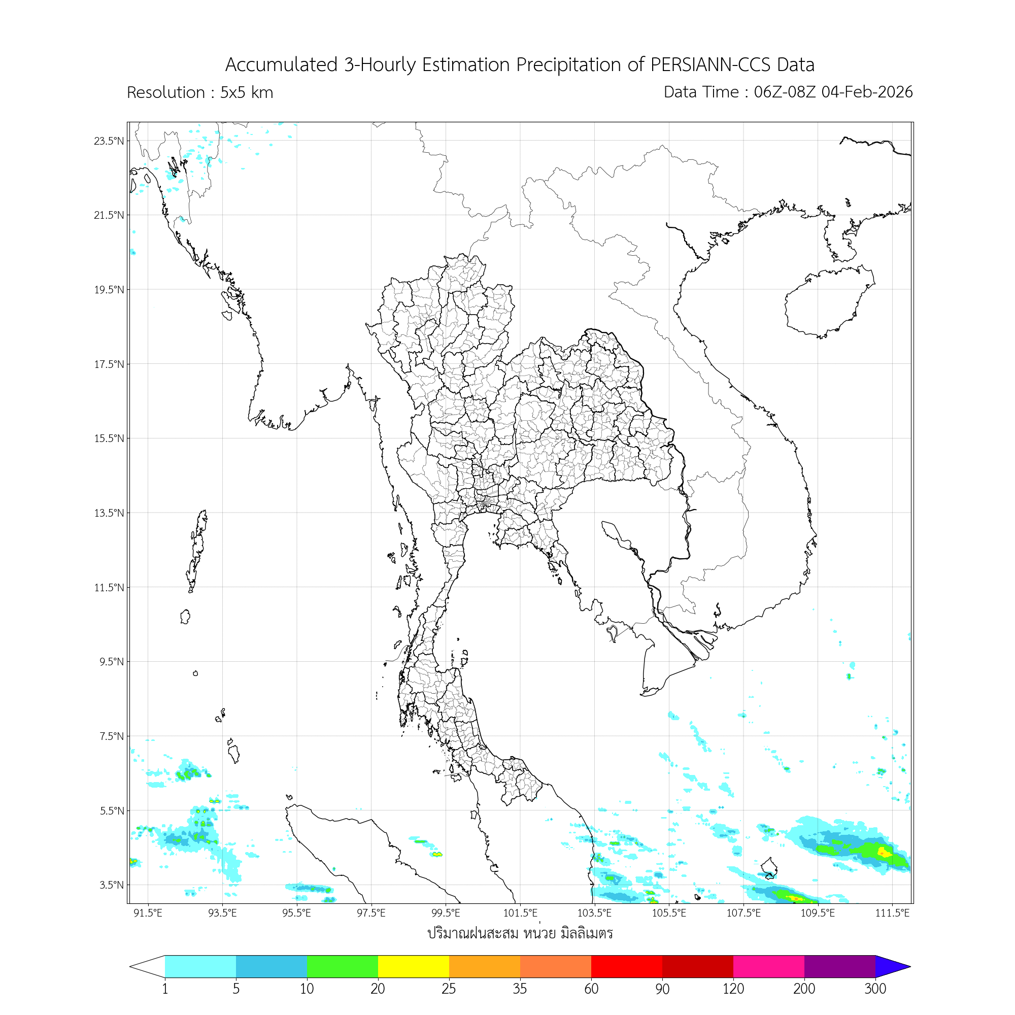 ค่าประมาณฝนสะสม 3 ชั่วโมง จากดาวเทียมอุตุนิยมวิทยา