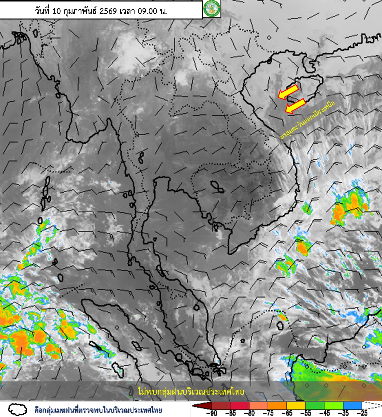 การประมาณค่าฝนจากดาวเทียม เมื่อวาน (09/02/2026)