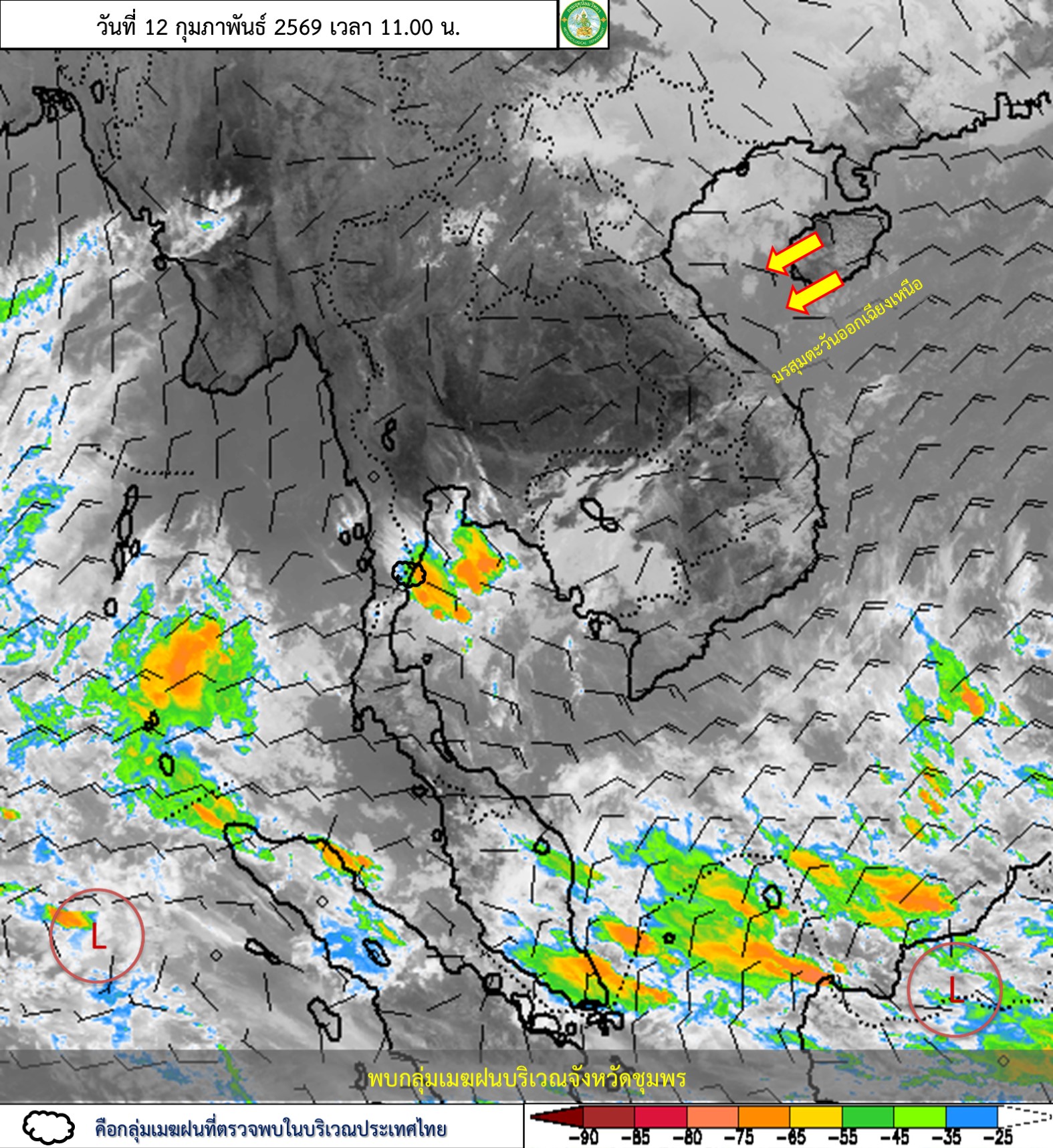 การประมาณค่าฝนจากดาวเทียม เมื่อวาน (11/02/2026)
