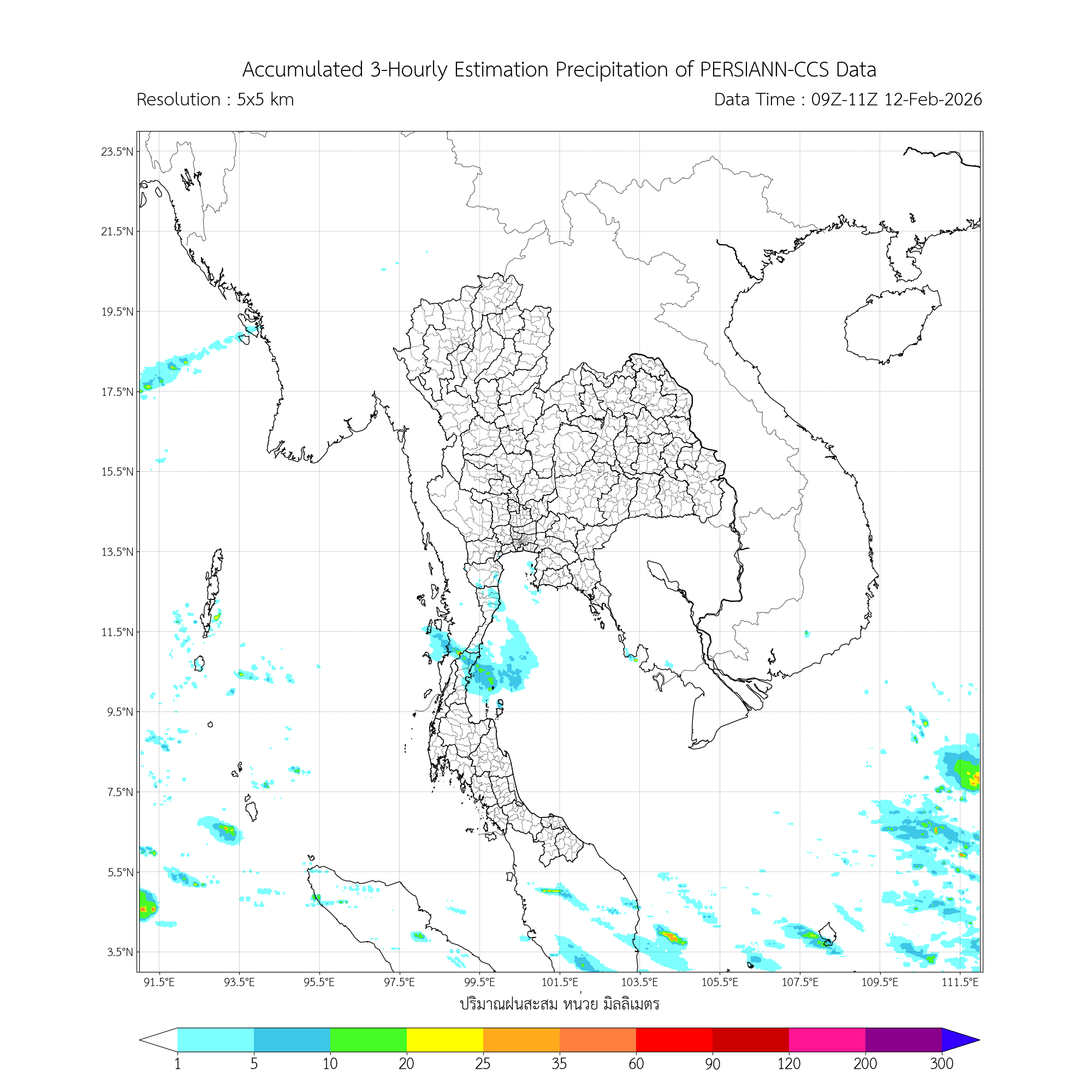 การประมาณค่าฝนจากดาวเทียม เมื่อวาน (11/02/2026)