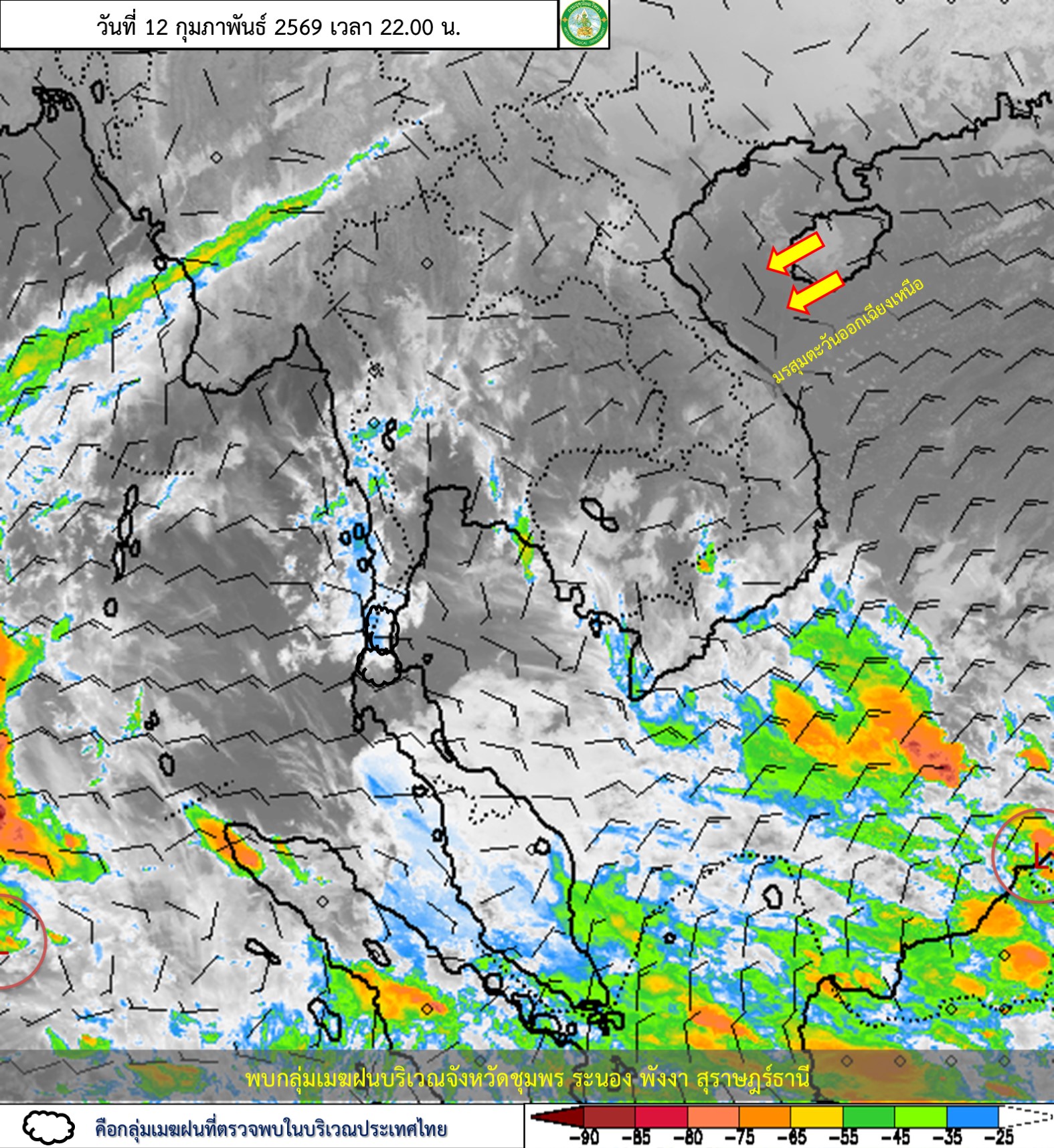 การประมาณค่าฝนจากดาวเทียม เมื่อวาน (12/02/2026)
