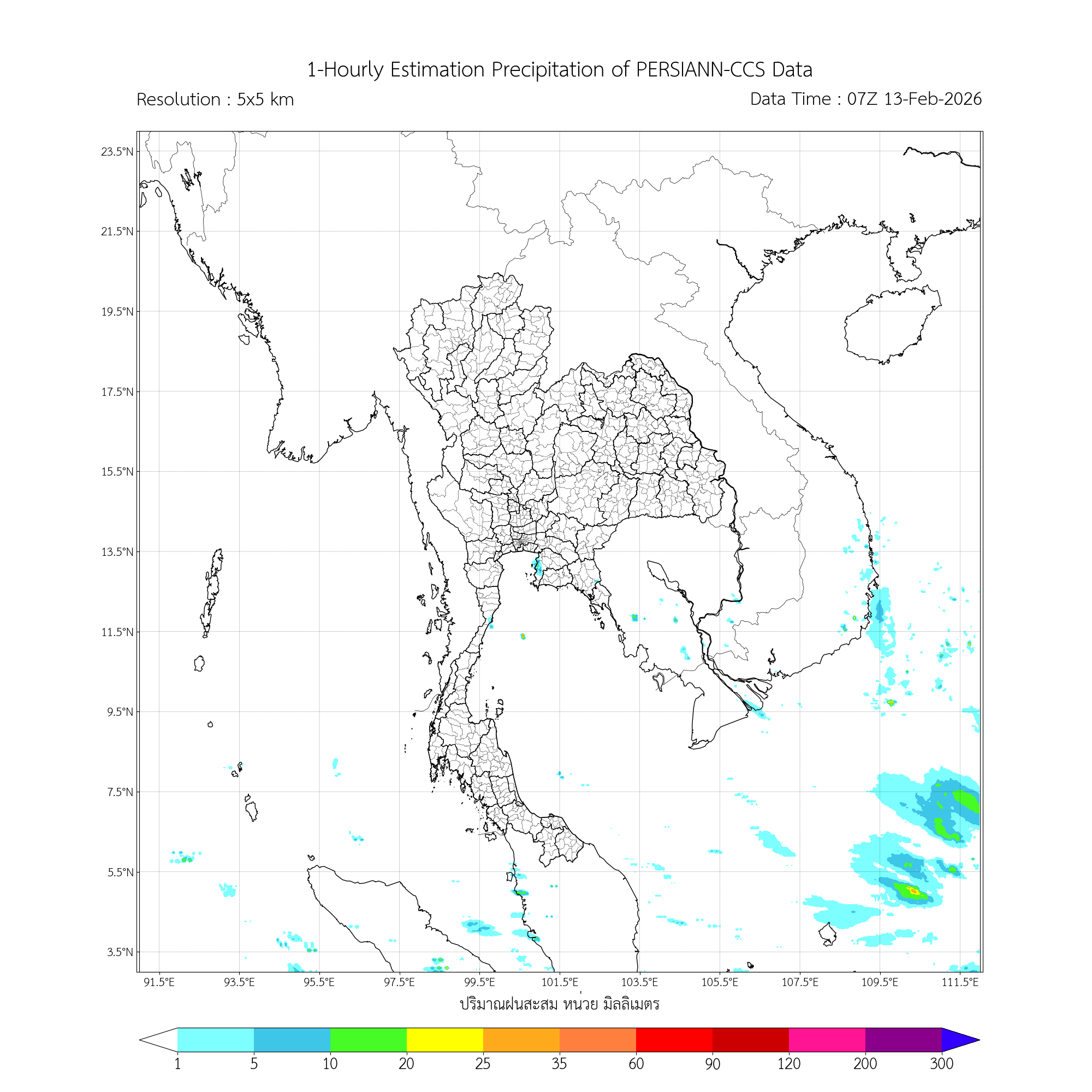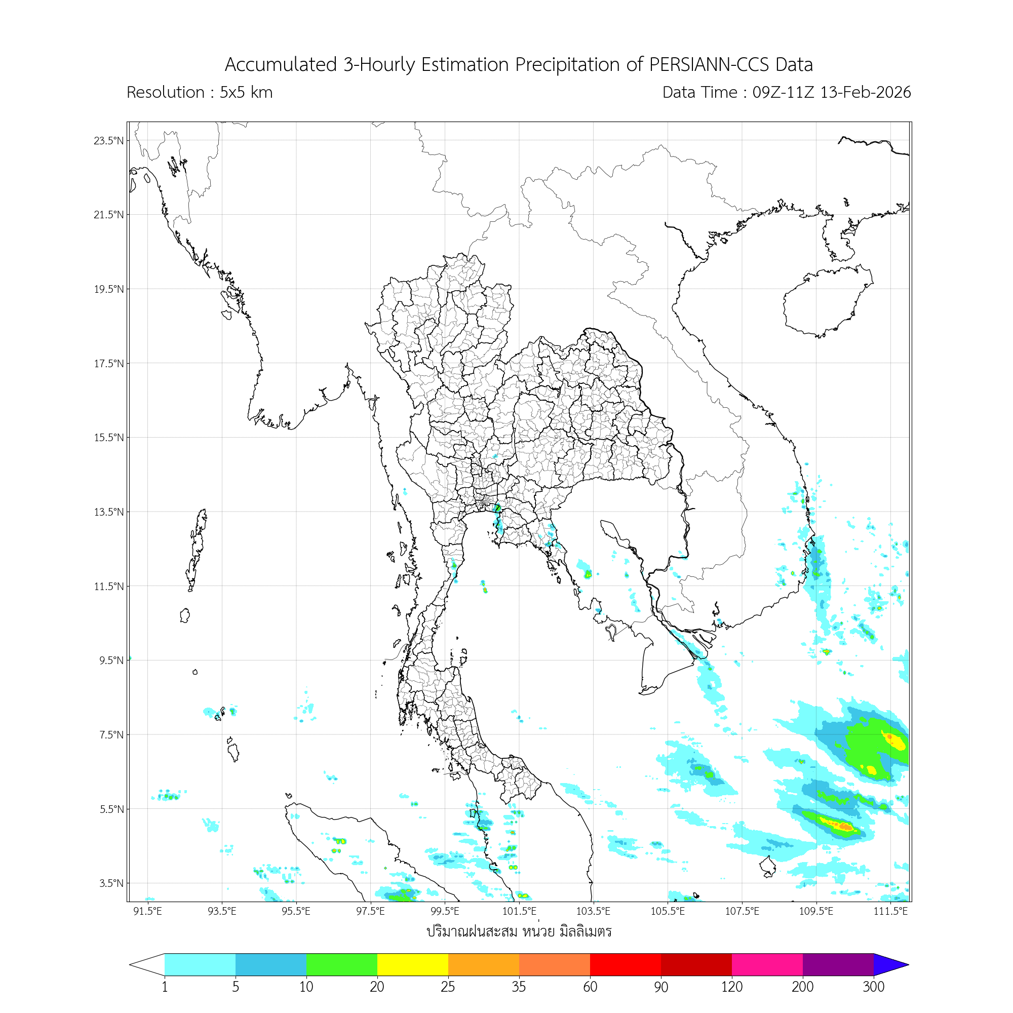 การประมาณค่าฝนจากดาวเทียม เมื่อวาน (12/02/2026)