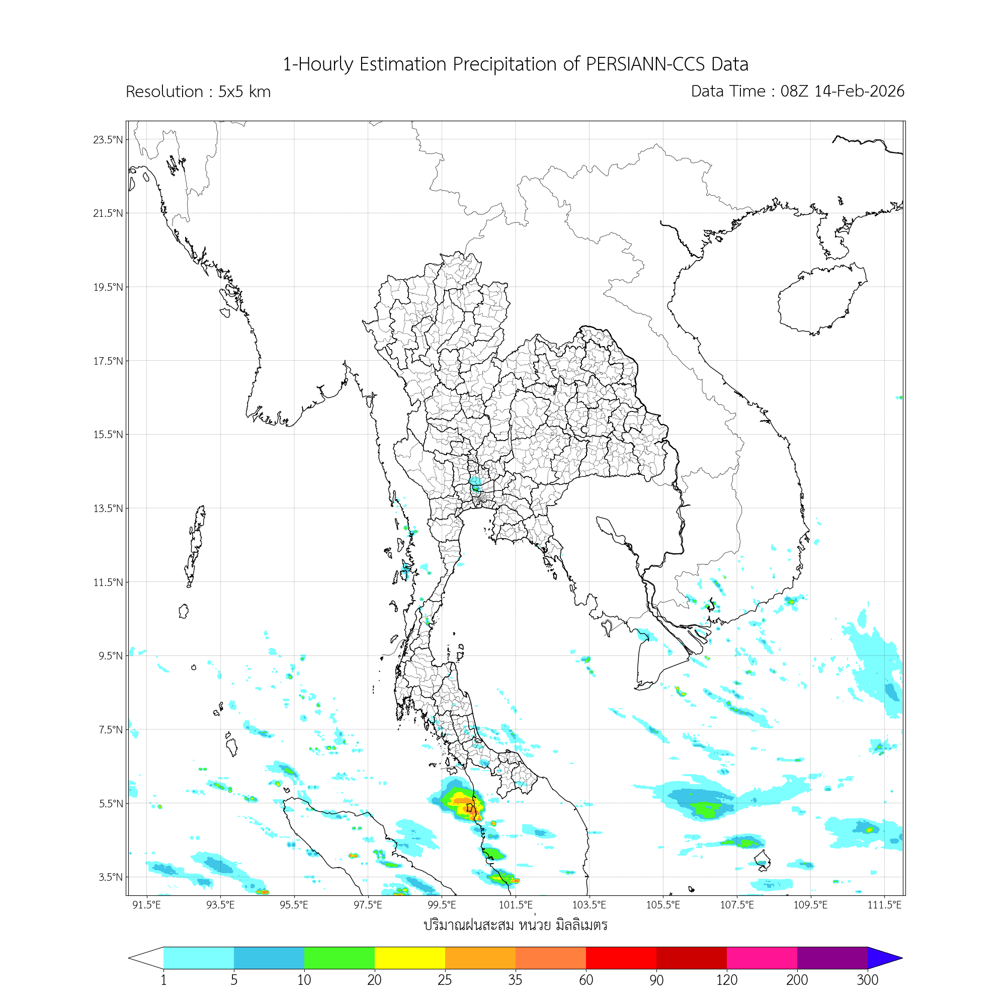 การประมาณค่าฝนจากดาวเทียม เมื่อวาน (13/02/2026)