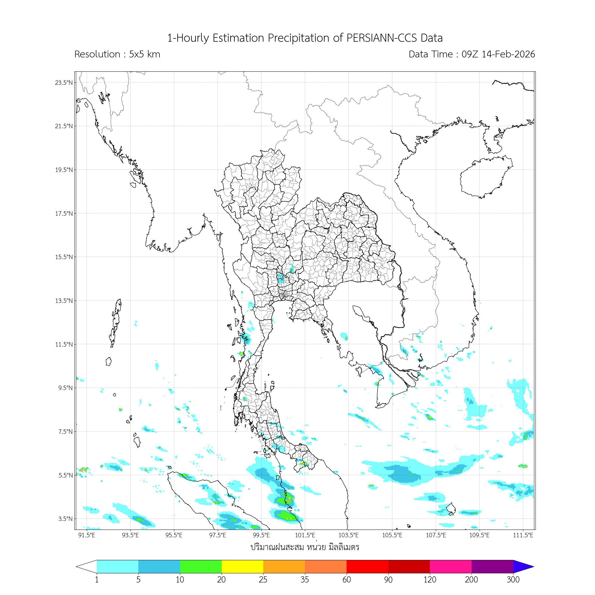 การประมาณค่าฝนจากดาวเทียม เมื่อวาน (13/02/2026)
