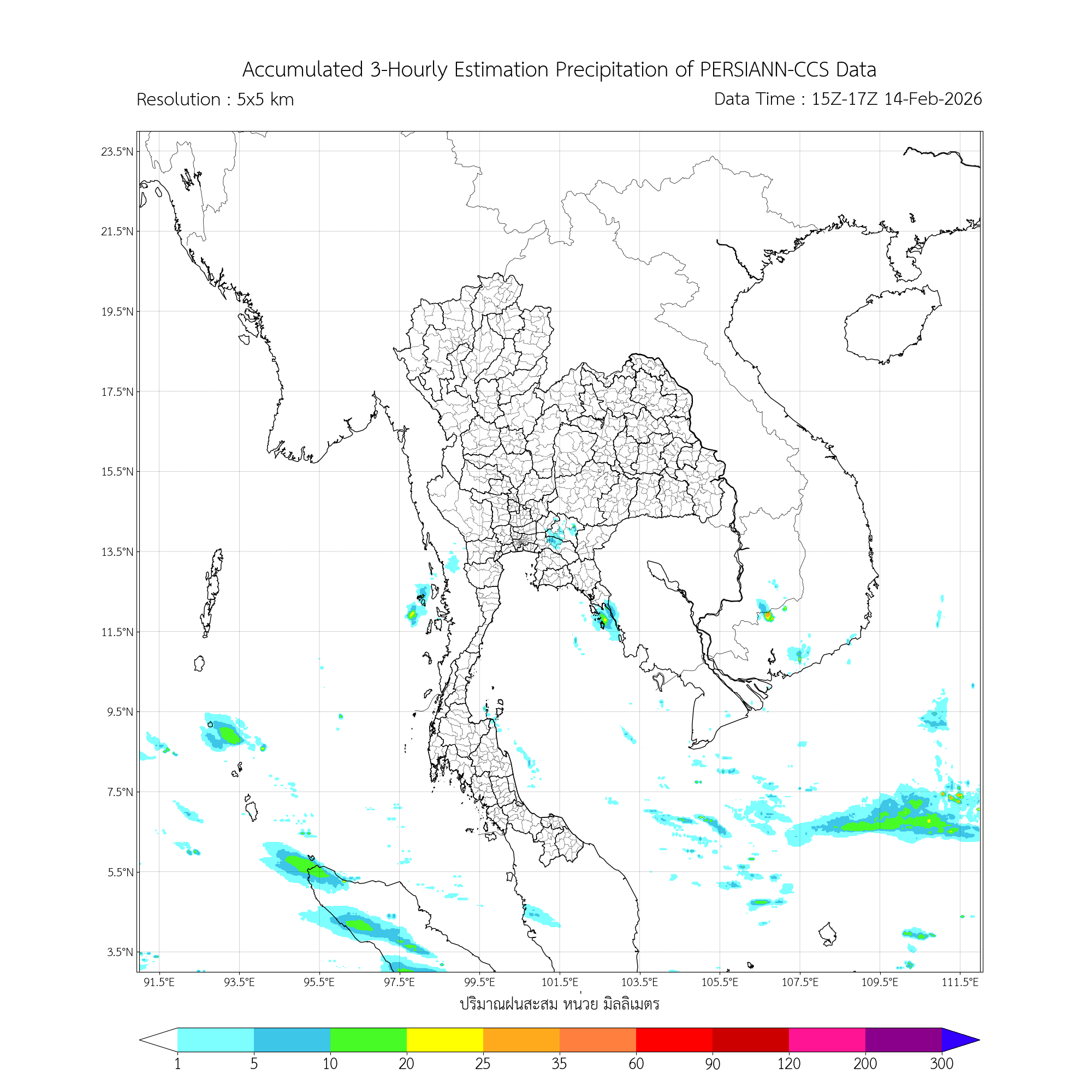 การประมาณค่าฝนจากดาวเทียม เมื่อวาน (13/02/2026)