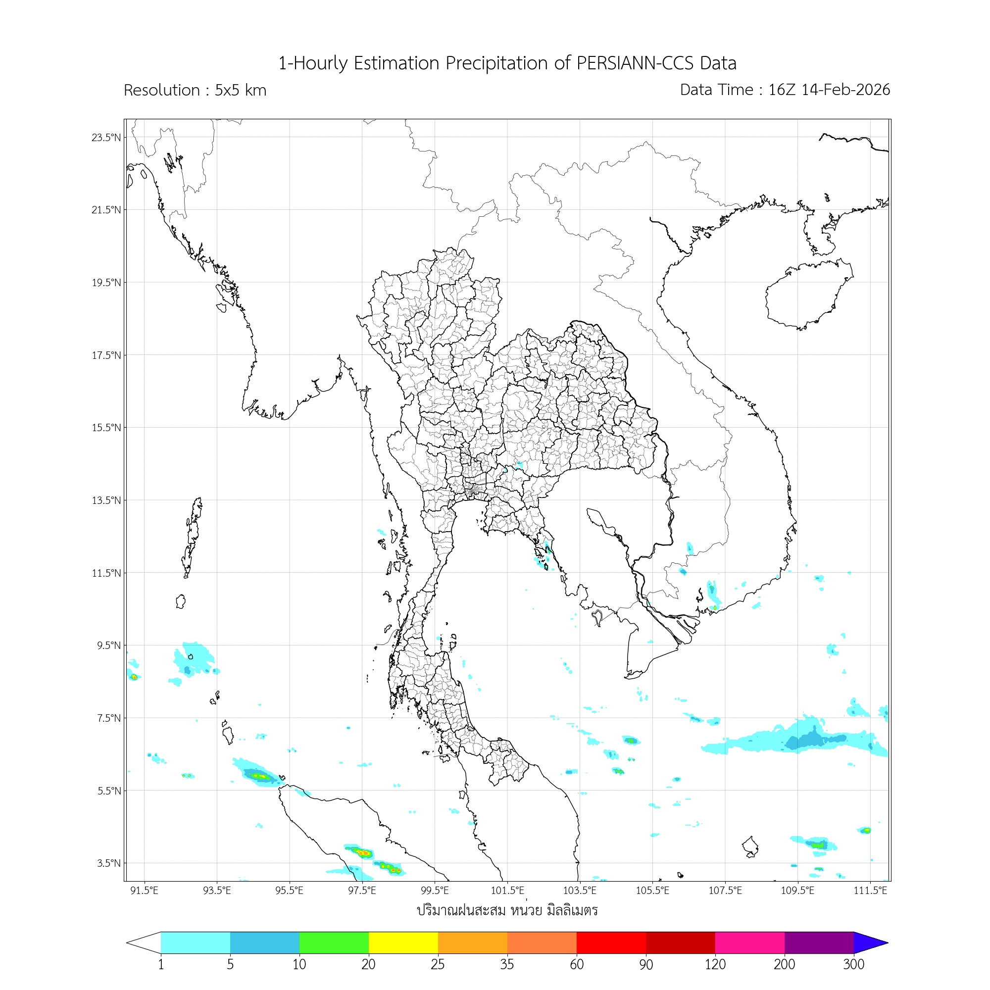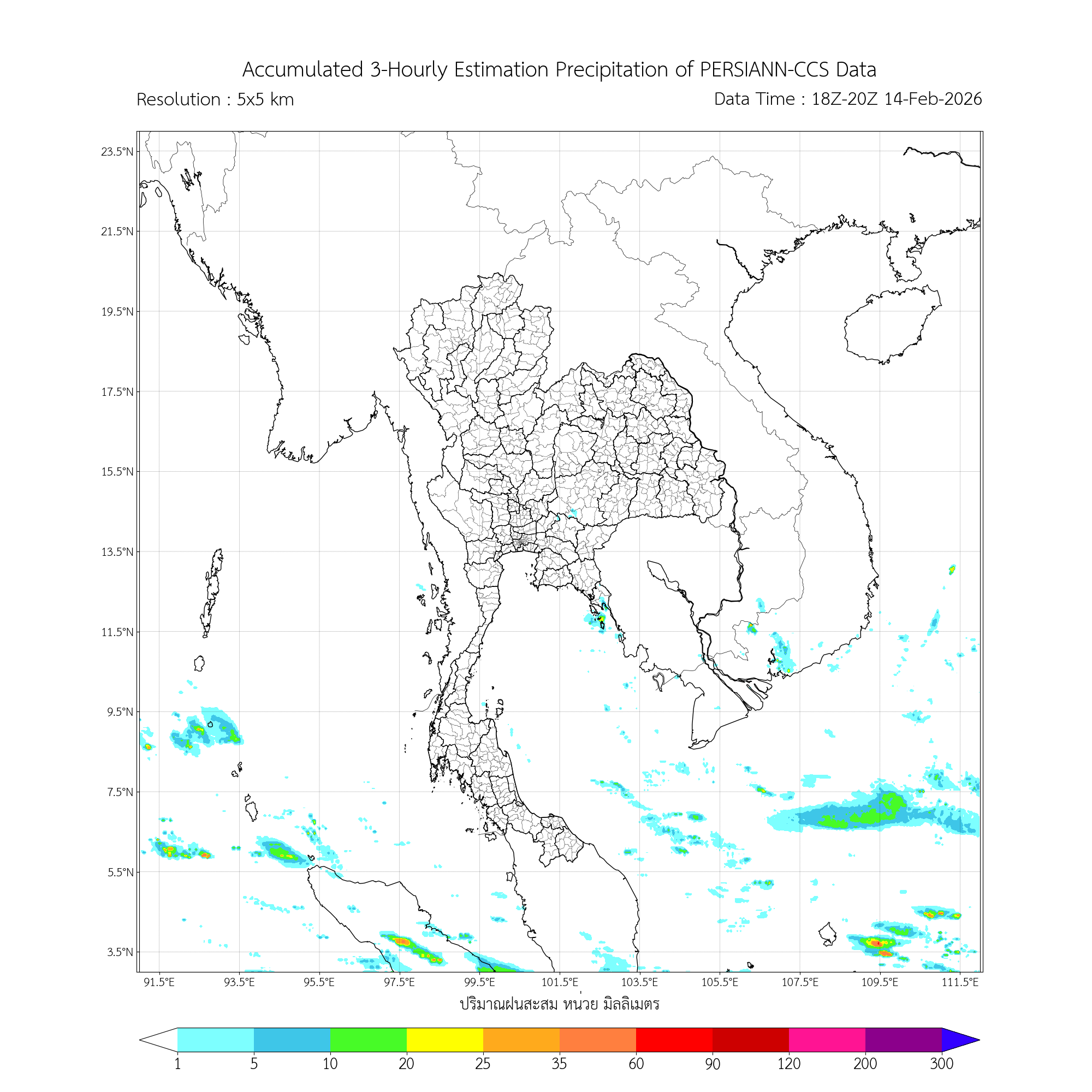การประมาณค่าฝนจากดาวเทียม เมื่อวาน (14/02/2026)