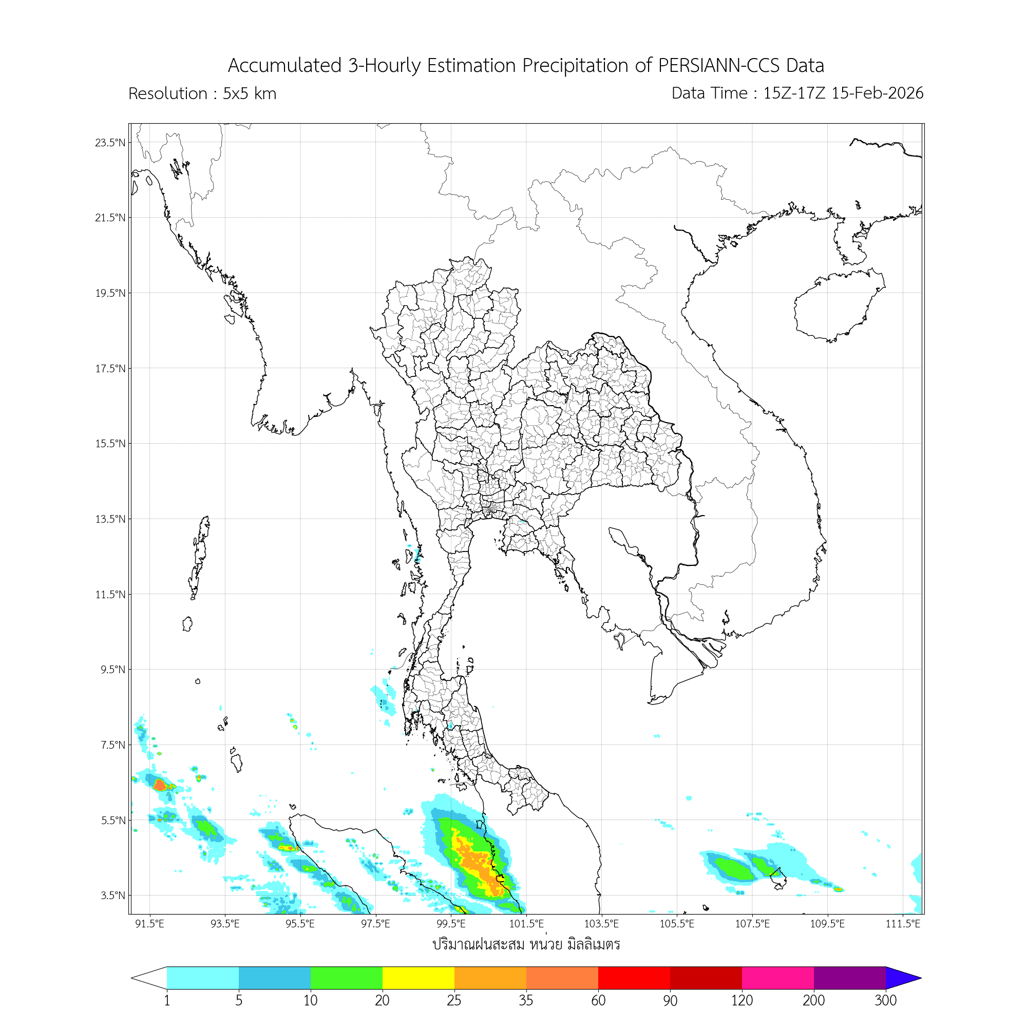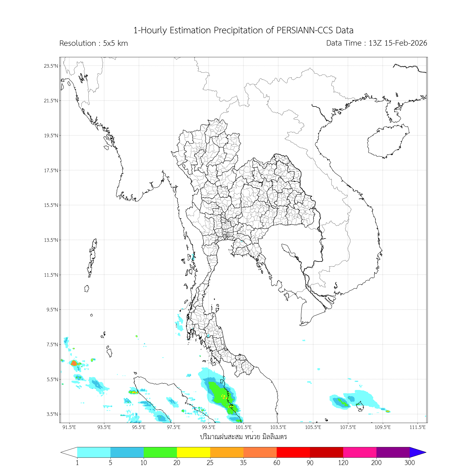 การประมาณค่าฝนจากดาวเทียม เมื่อวาน (14/02/2026)