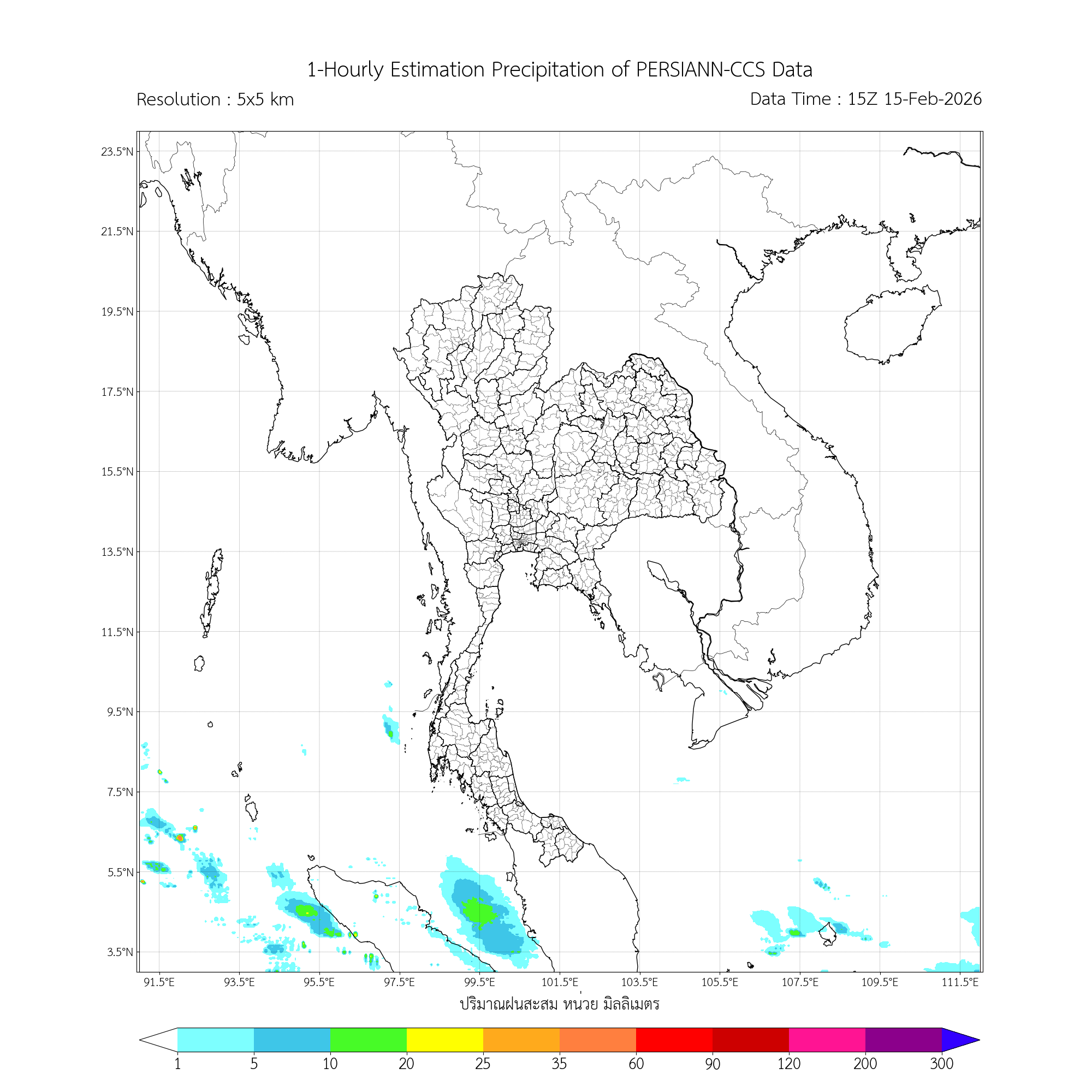 การประมาณค่าฝนจากดาวเทียม เมื่อวาน (15/02/2026)