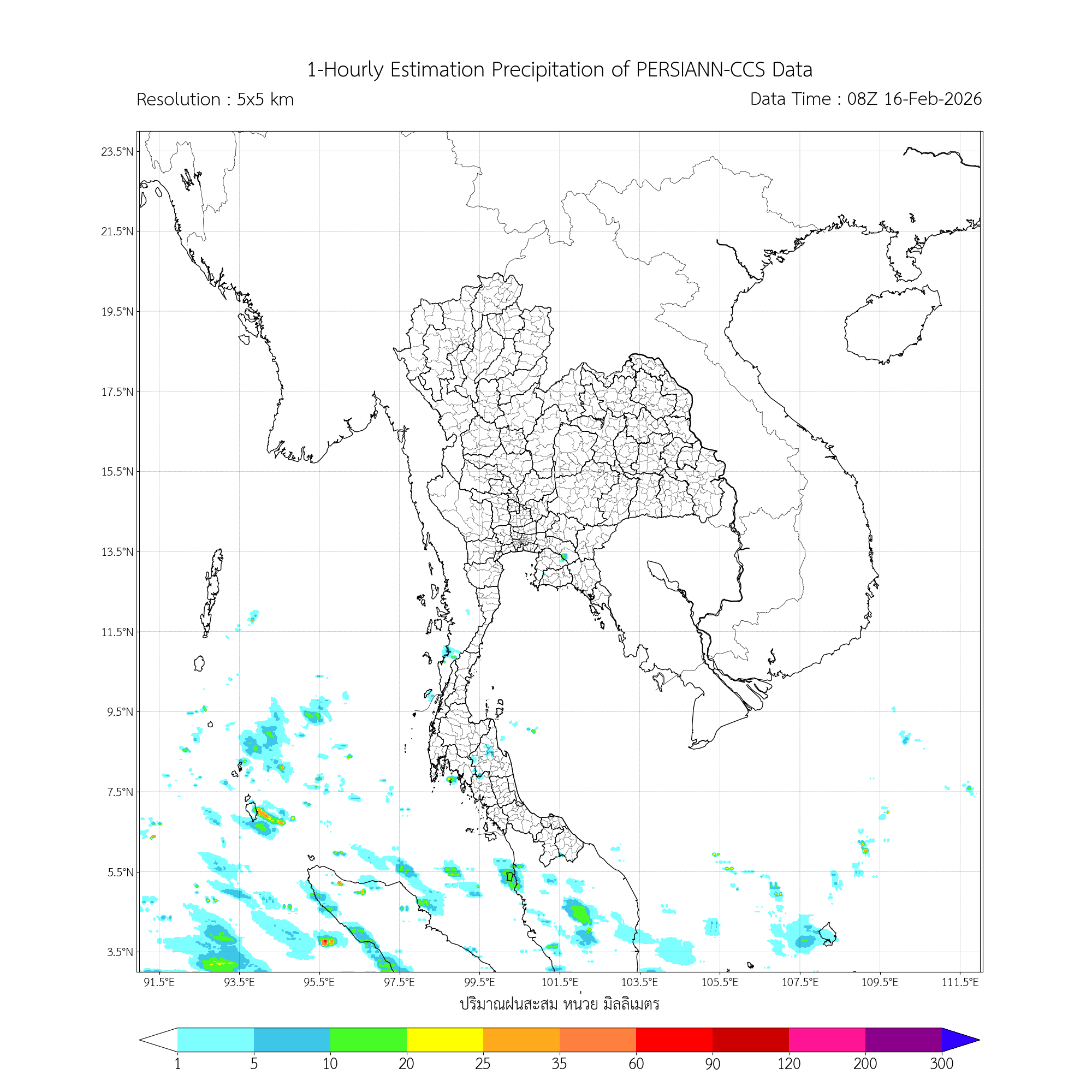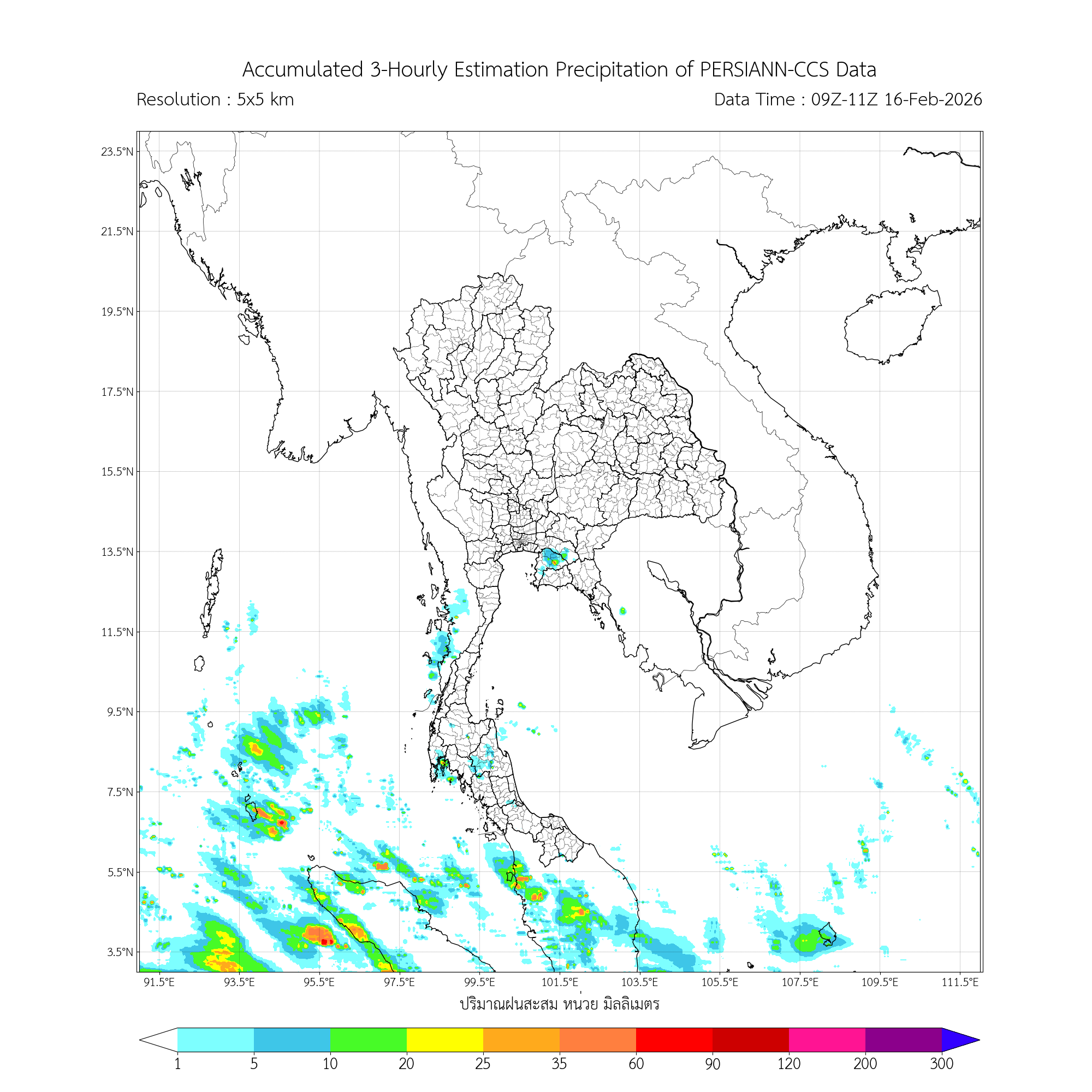 การประมาณค่าฝนจากดาวเทียม เมื่อวาน (15/02/2026)