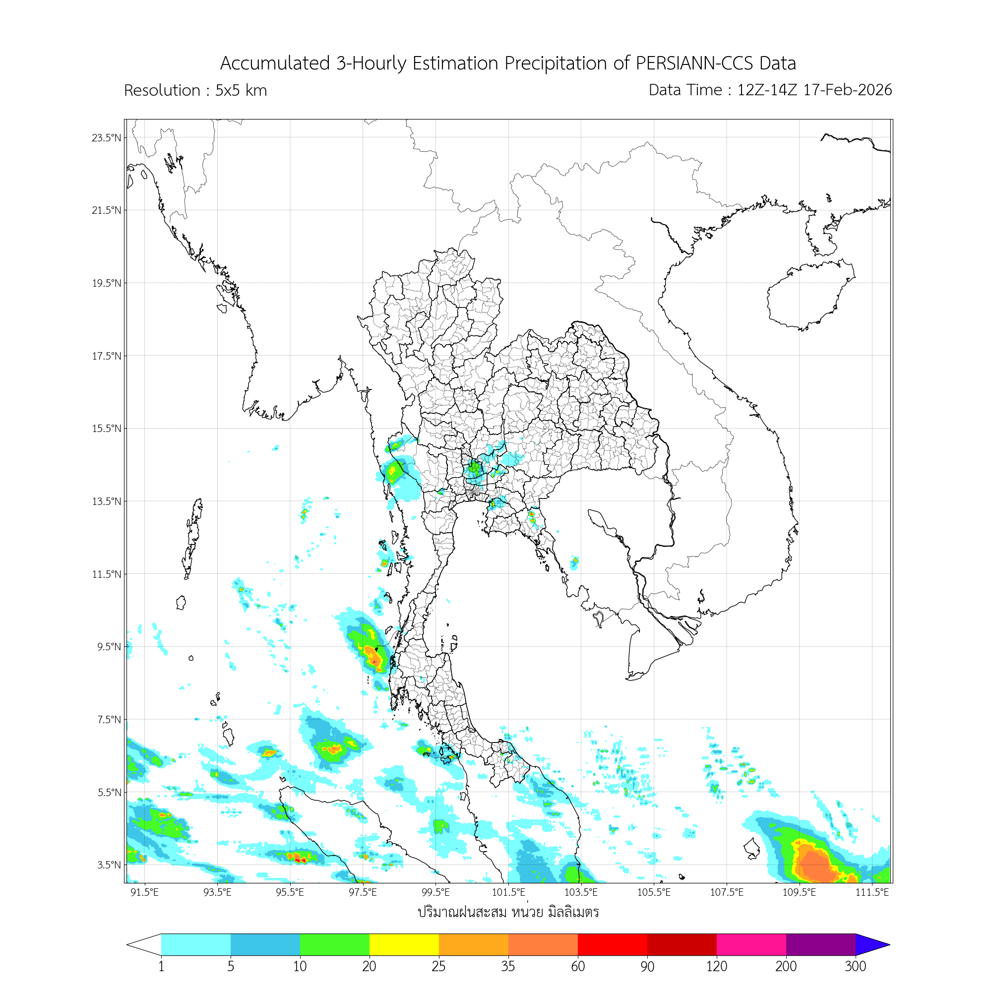 การประมาณค่าฝนจากดาวเทียม เมื่อวาน (16/02/2026)