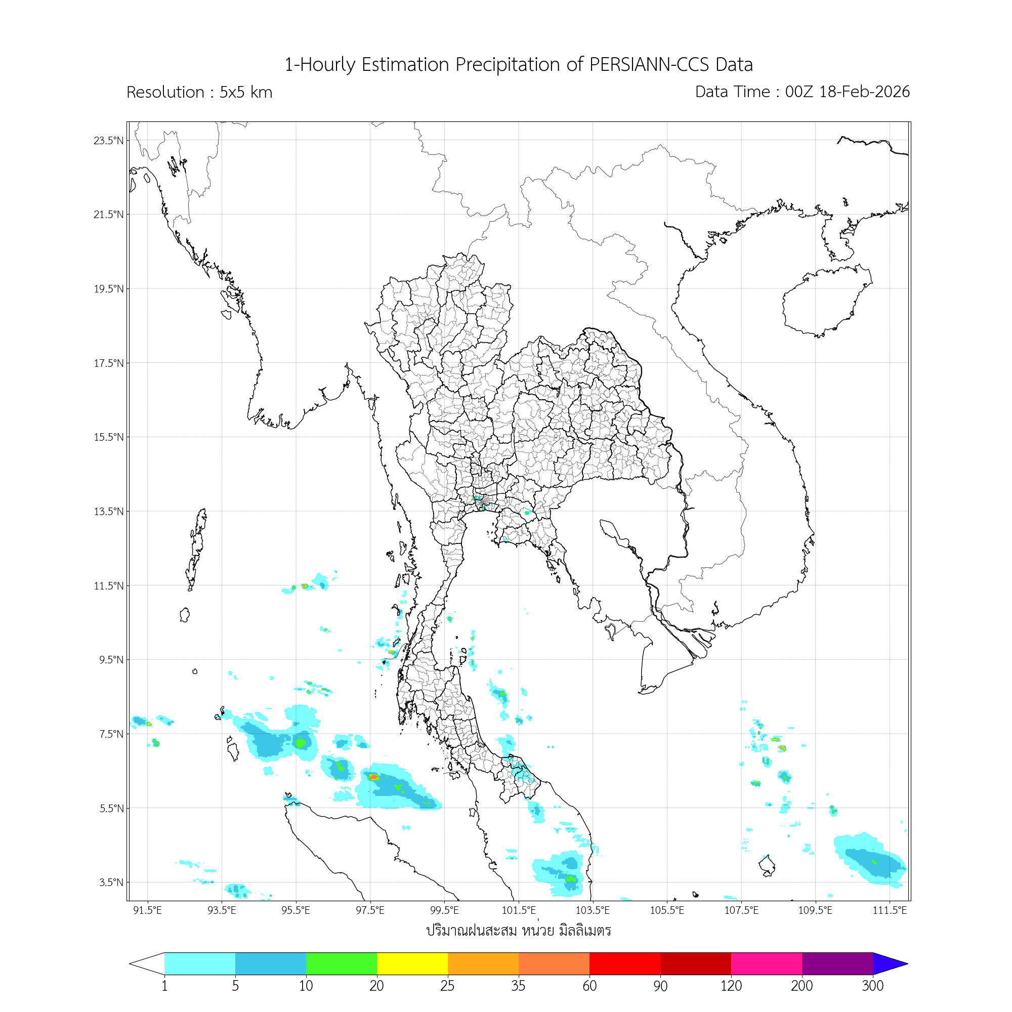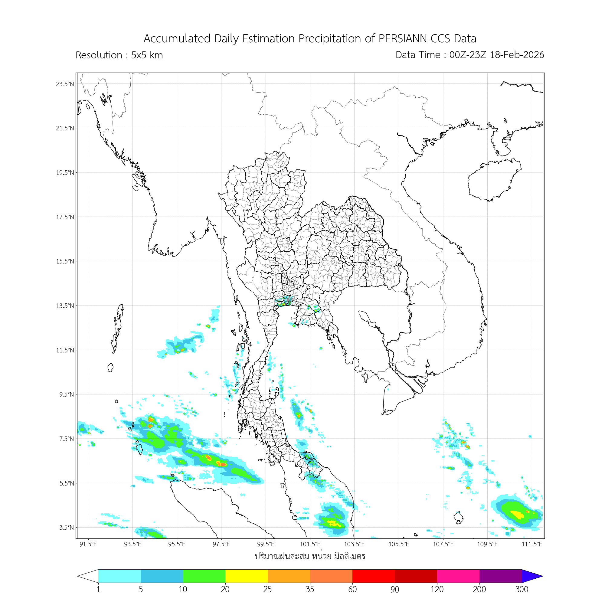 การประมาณค่าฝนจากดาวเทียม เมื่อวาน (17/02/2026)