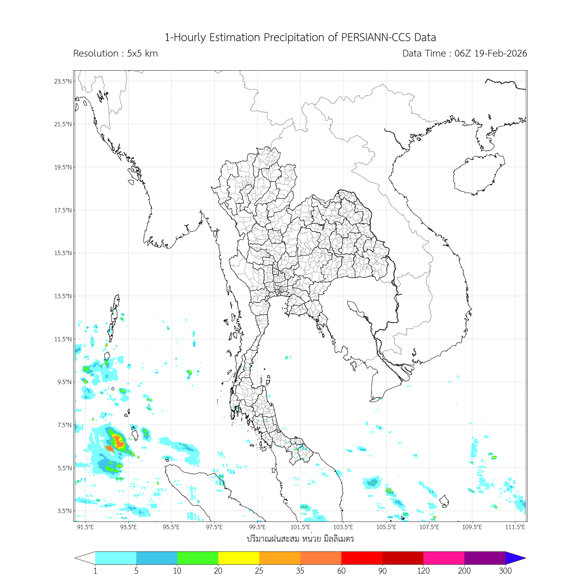 การประมาณค่าฝนจากดาวเทียม เมื่อวาน (18/02/2026)