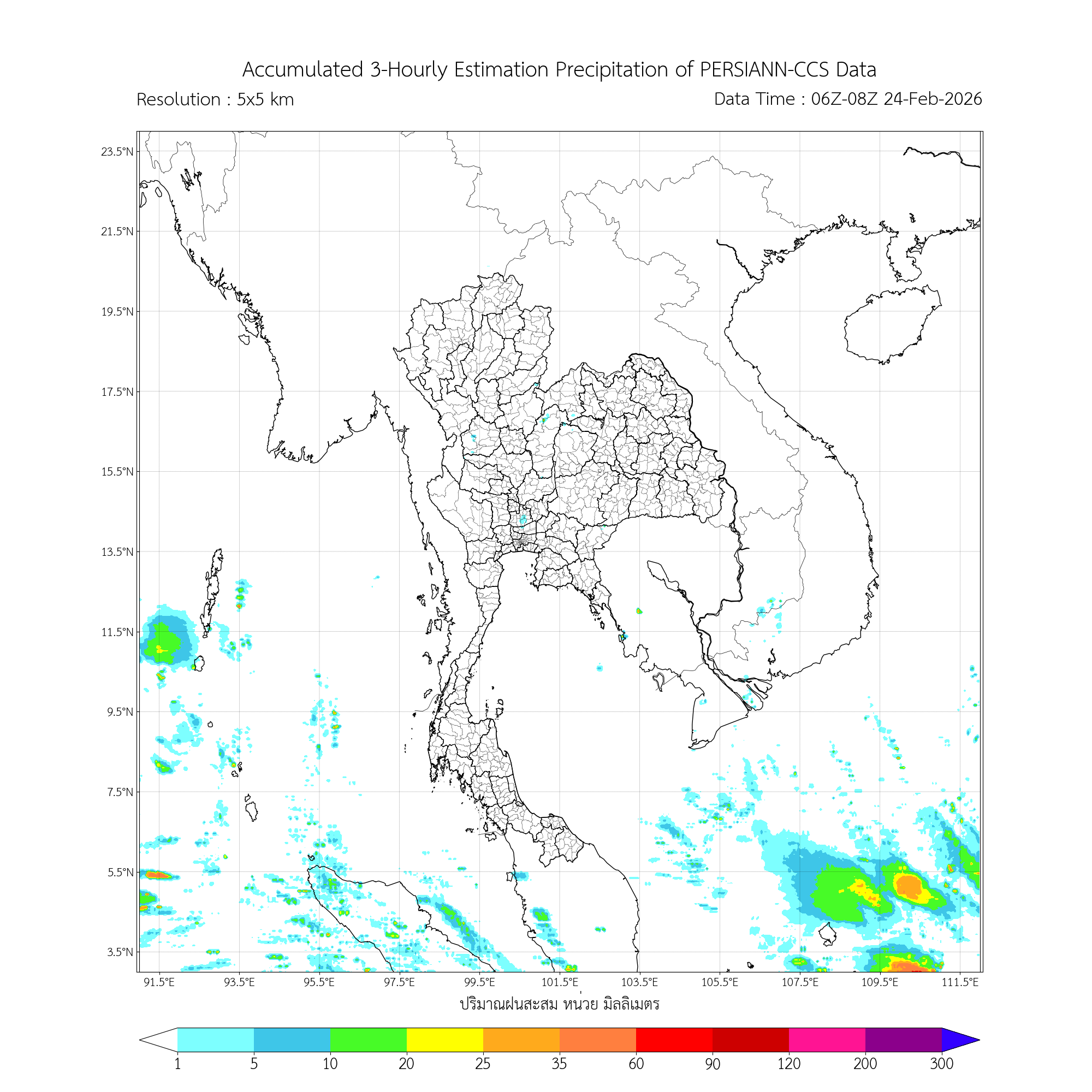 การประมาณค่าฝนจากดาวเทียม เมื่อวาน (23/02/2026)