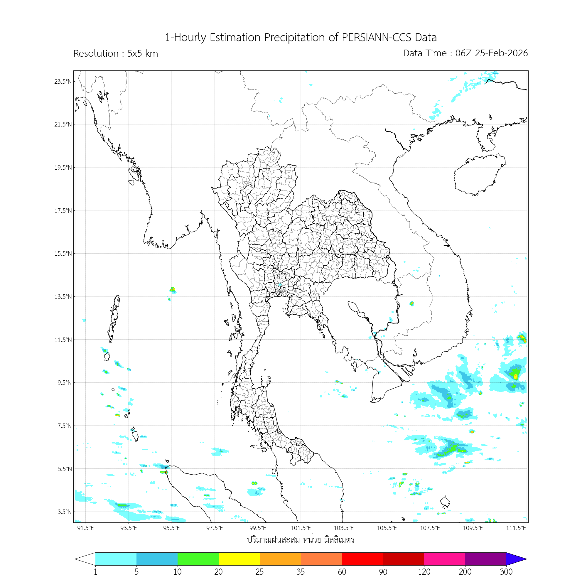การประมาณค่าฝนจากดาวเทียม เมื่อวาน (24/02/2026)