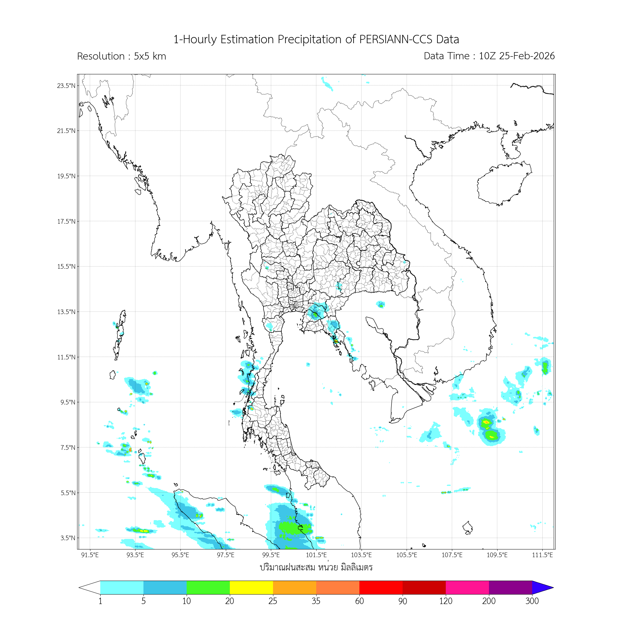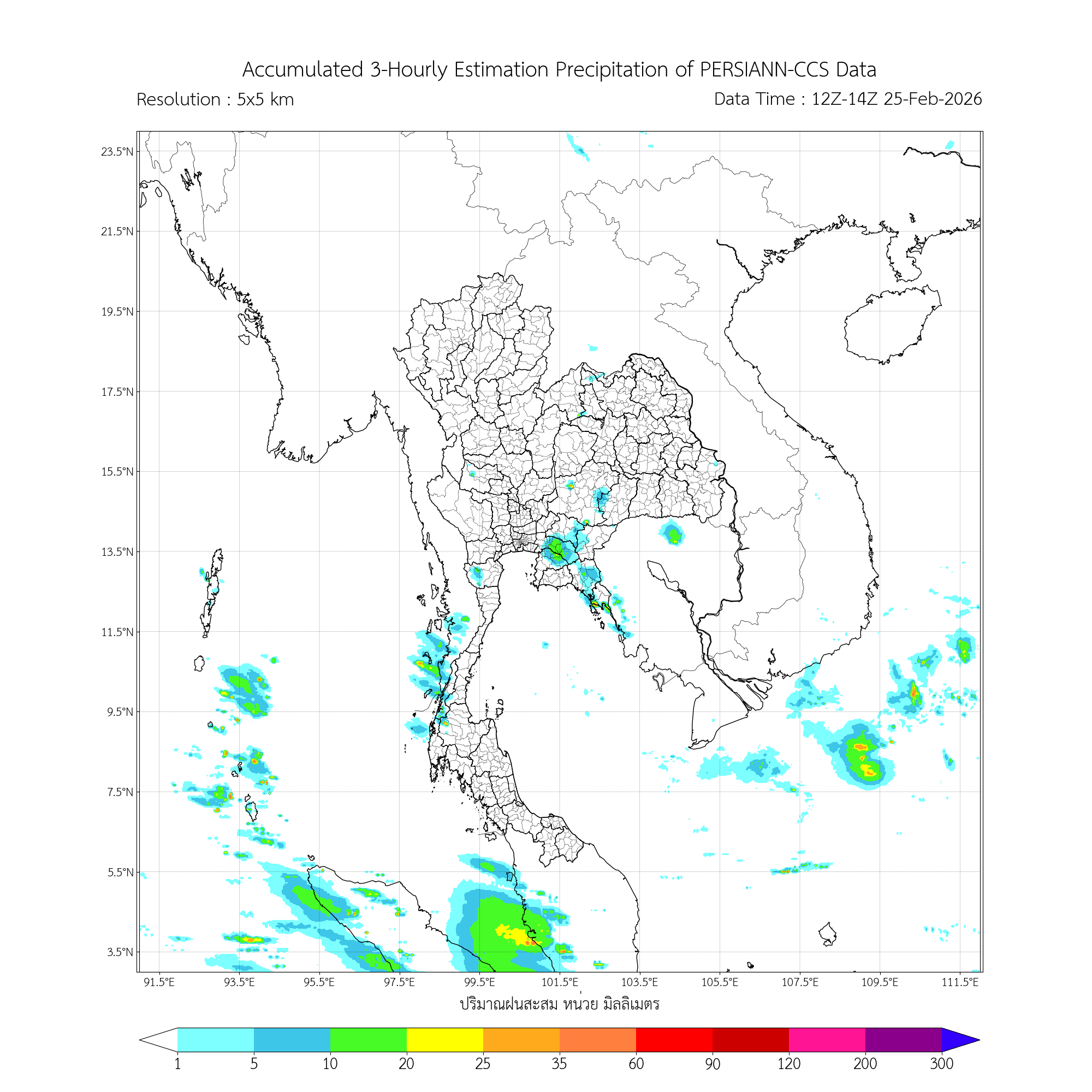 การประมาณค่าฝนจากดาวเทียม เมื่อวาน (24/02/2026)