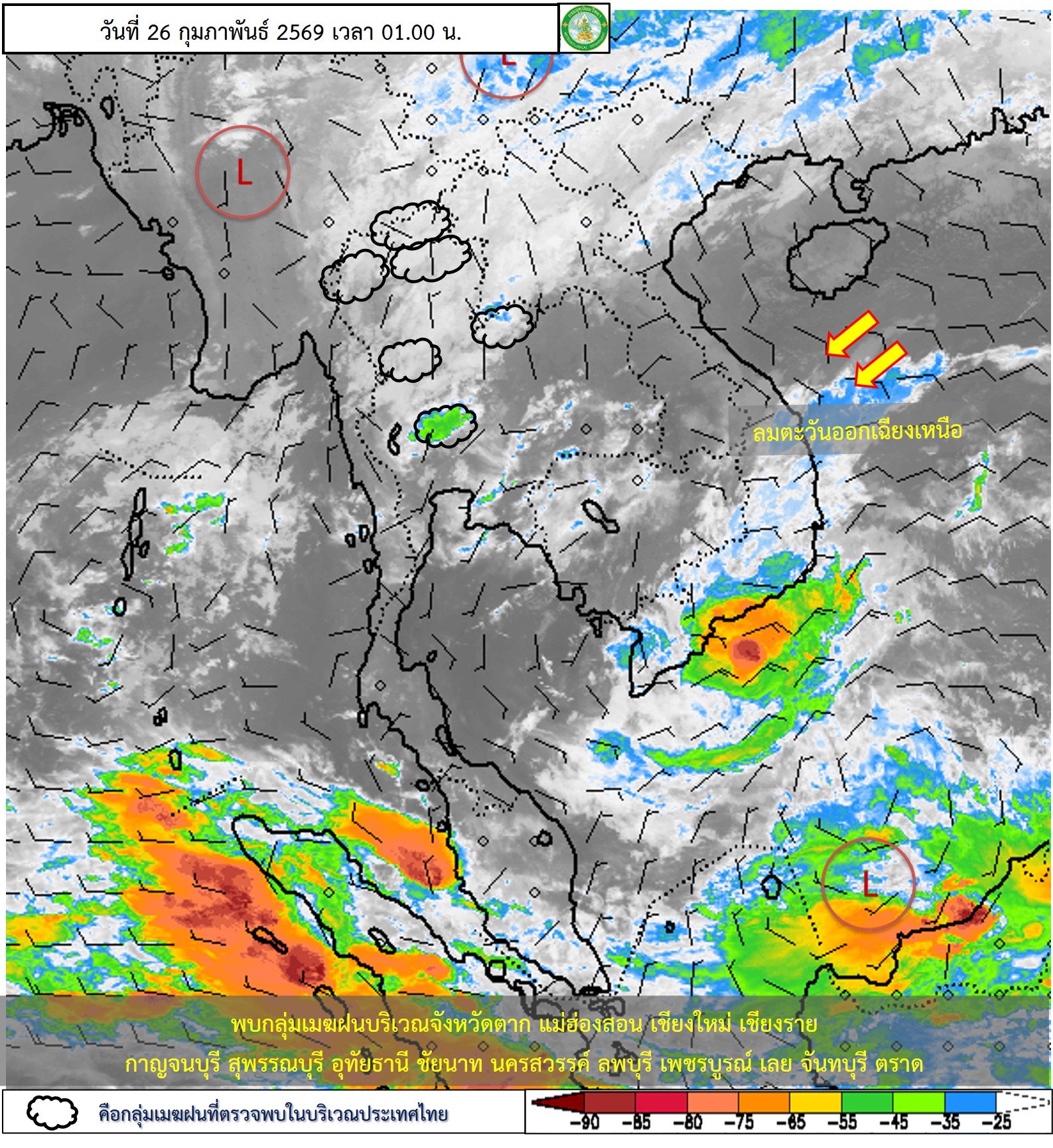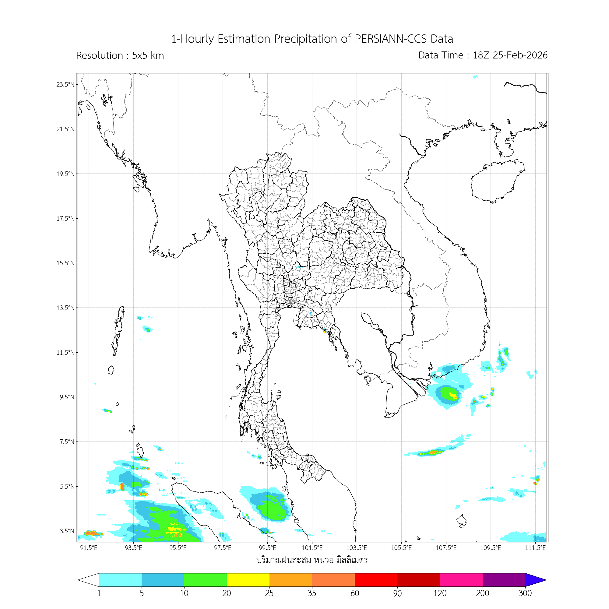 การประมาณค่าฝนจากดาวเทียม เมื่อวาน (25/02/2026)