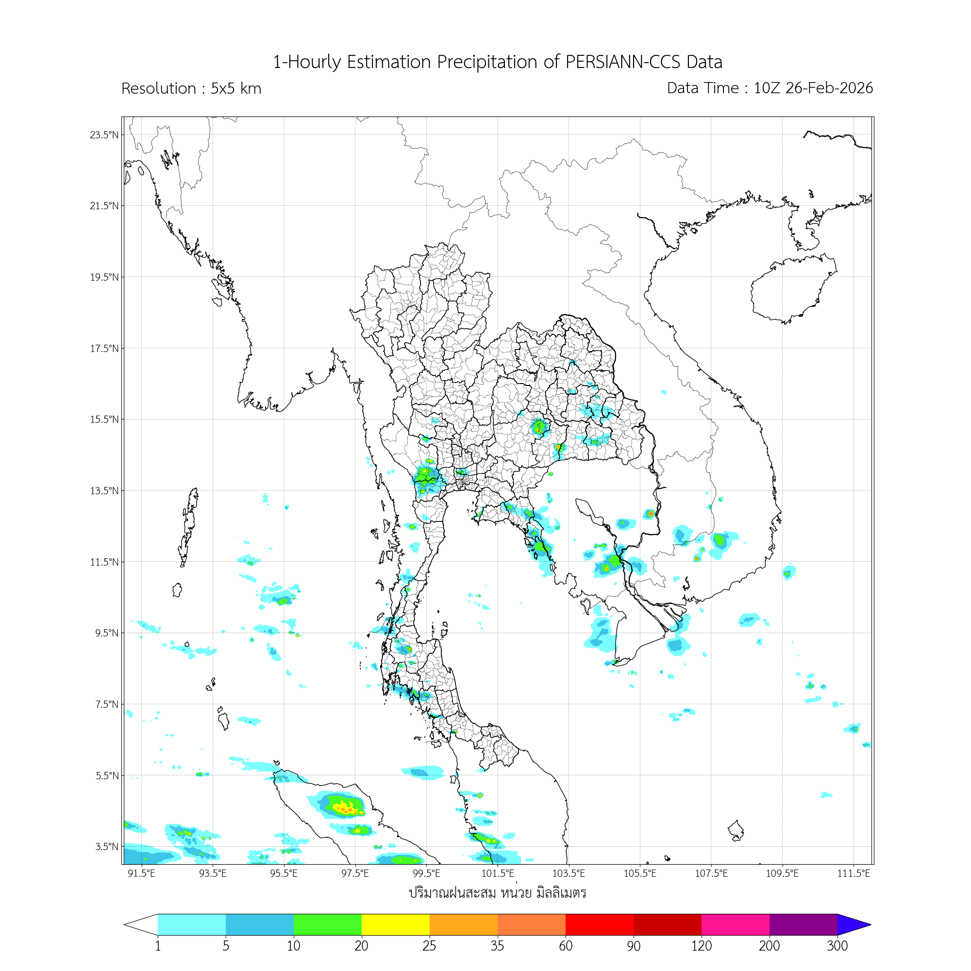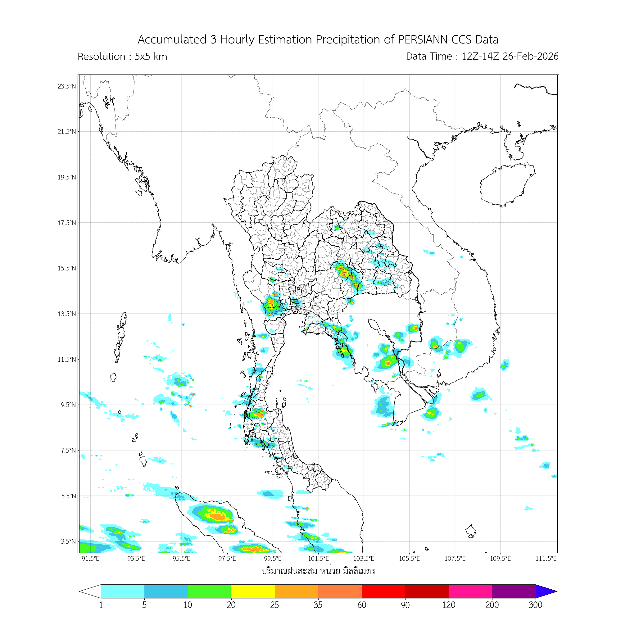 การประมาณค่าฝนจากดาวเทียม เมื่อวาน (25/02/2026)
