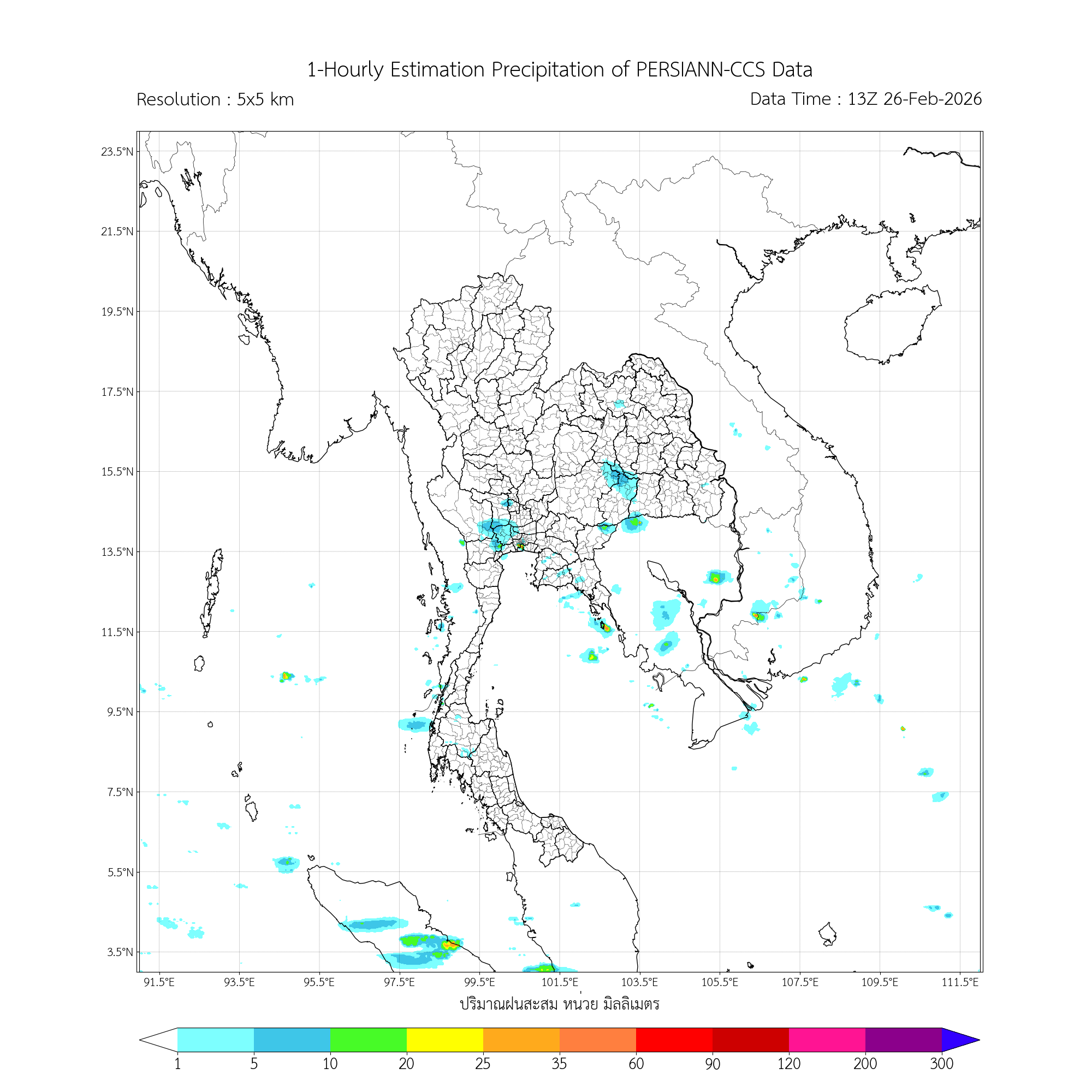 การประมาณค่าฝนจากดาวเทียม เมื่อวาน (25/02/2026)