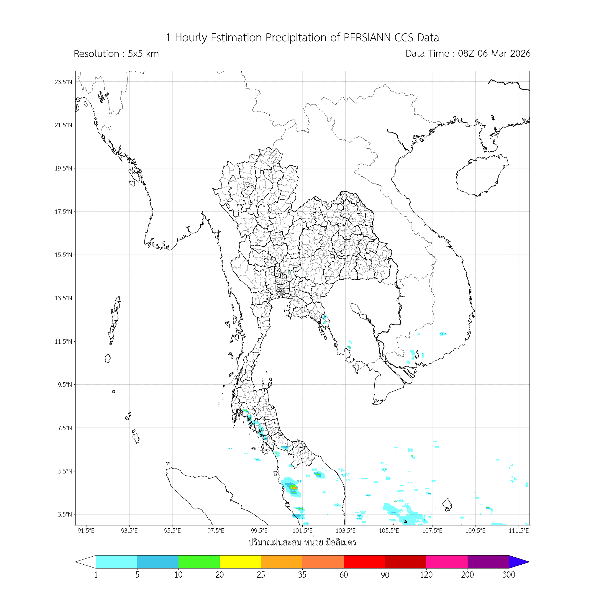 การประมาณค่าฝนจากดาวเทียม เมื่อวาน (05/03/2026)