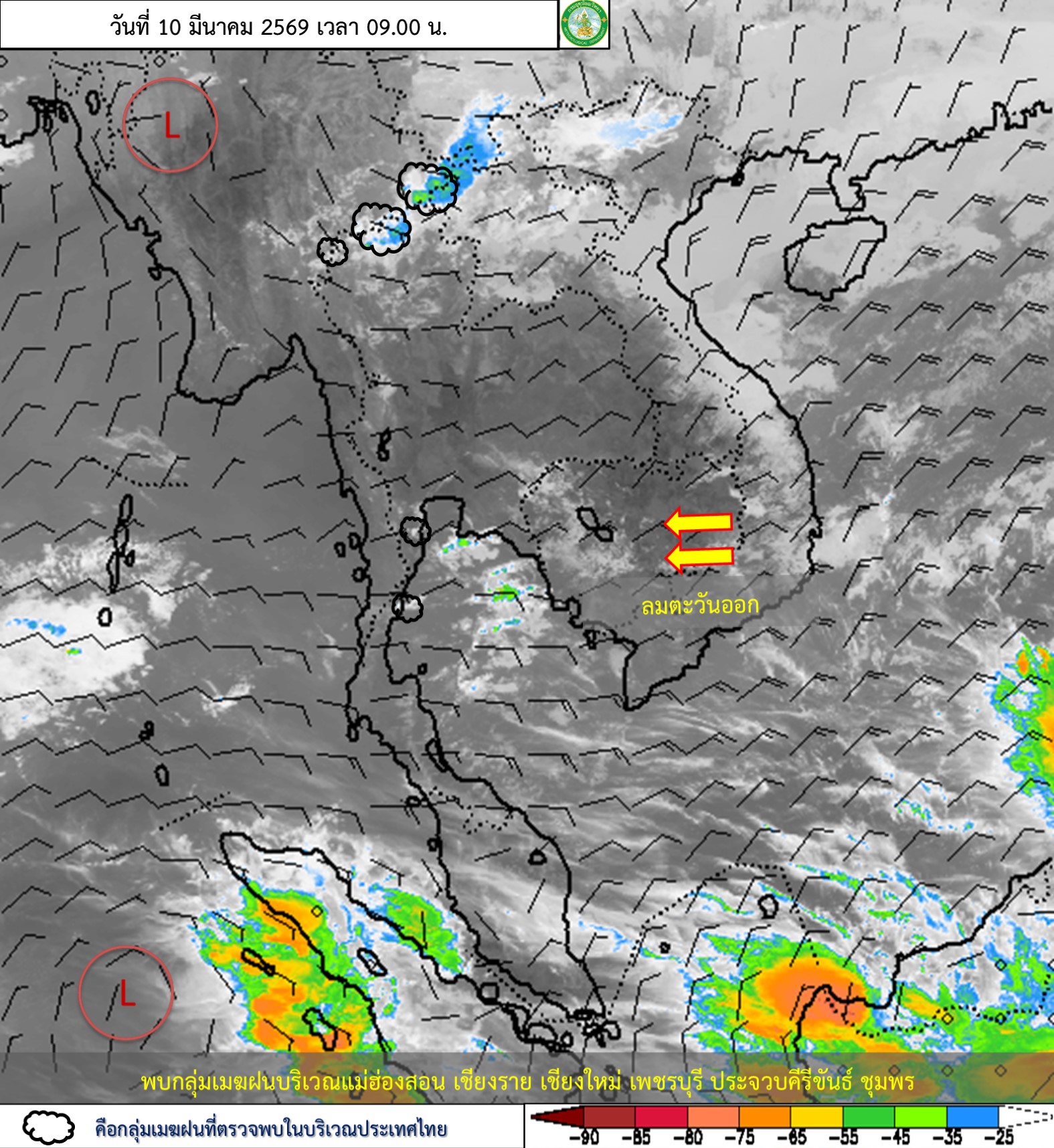 การประมาณค่าฝนจากดาวเทียม เมื่อวาน (09/03/2026)